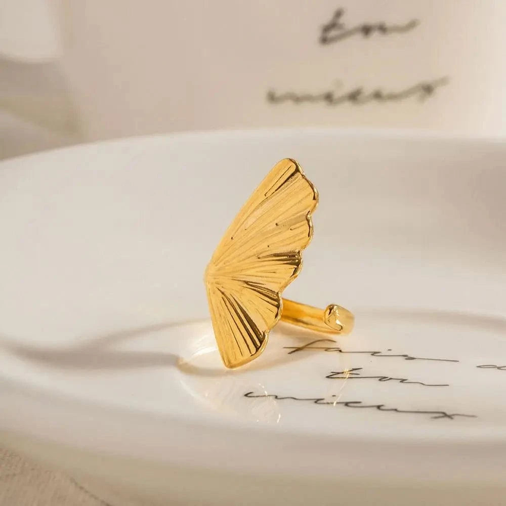 R1909 Arrival Stainless Steel 18K Gold Plated Ring Gift Opening Ginkgo Leaf Shaped Rings For Women