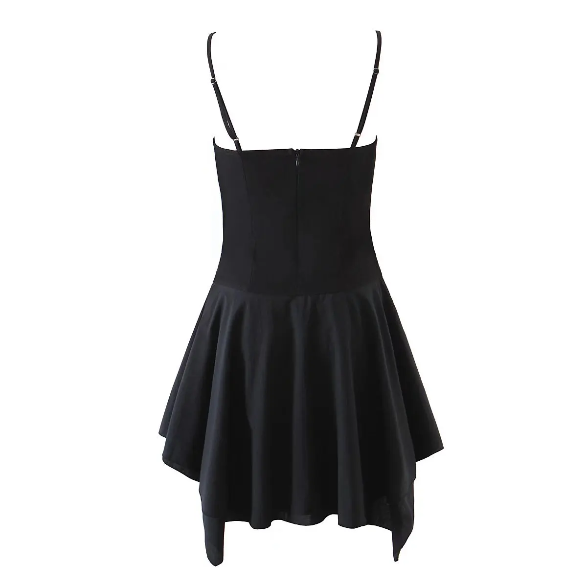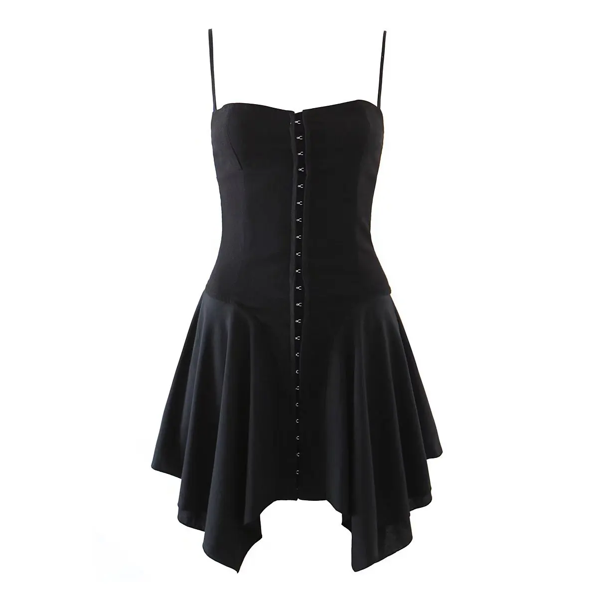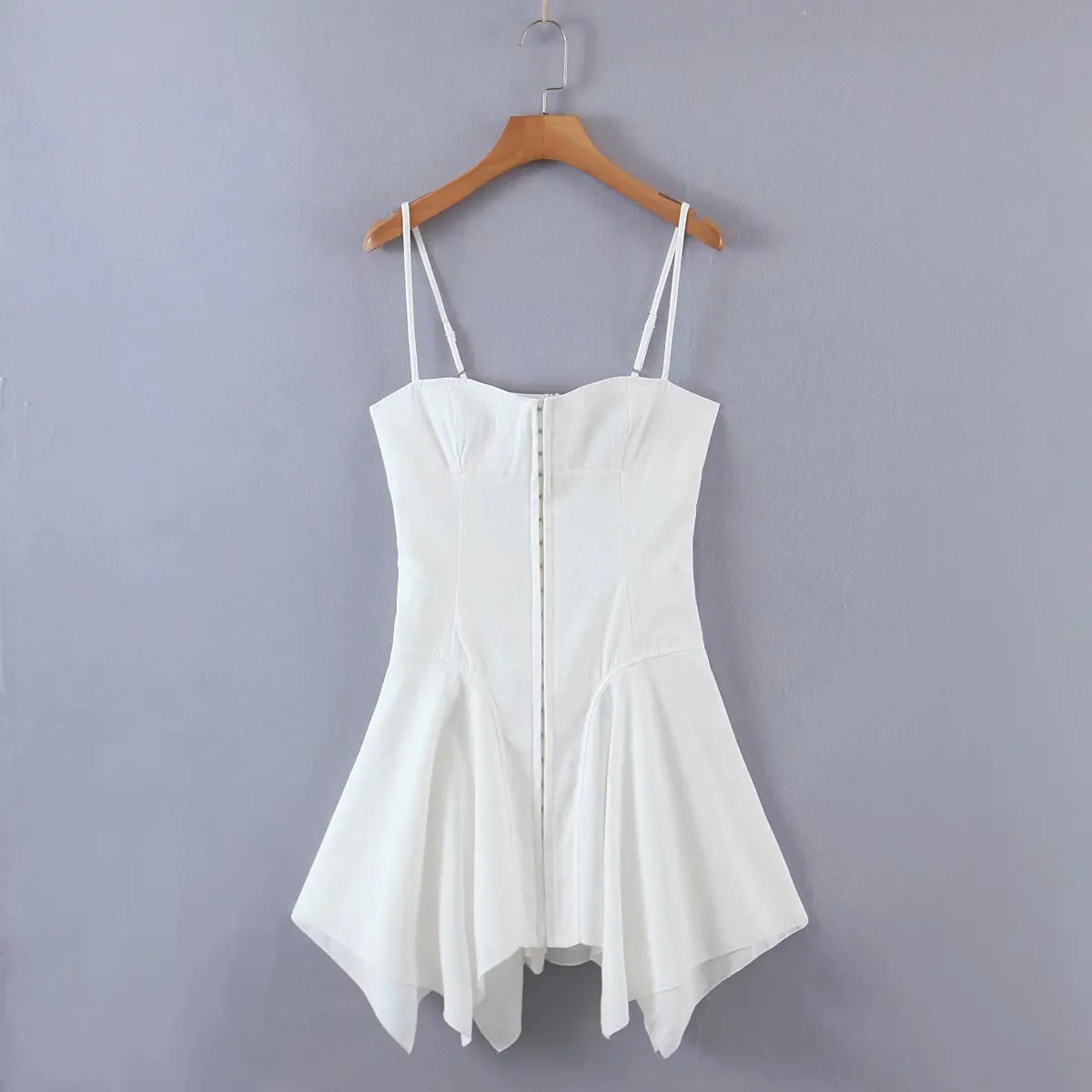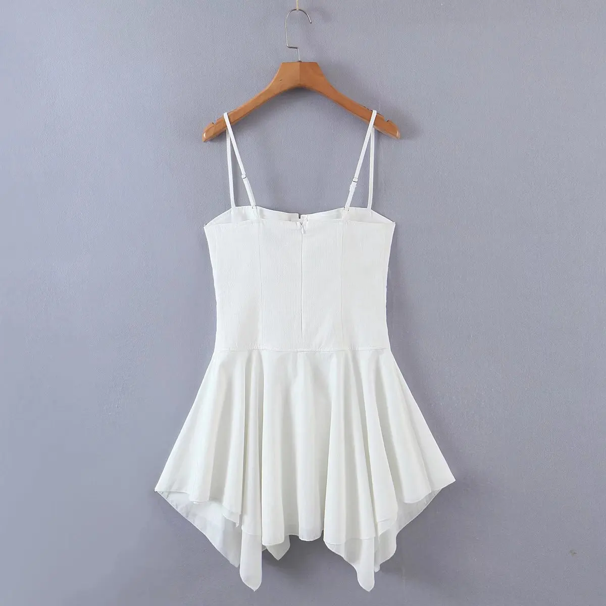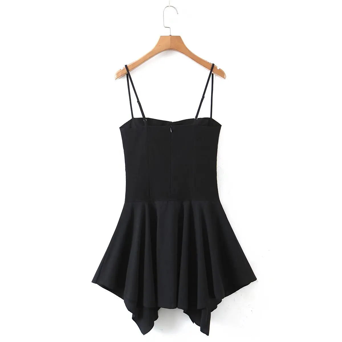 R20022S European style women's solid color invisible button sexy strapless irregular hem short dress