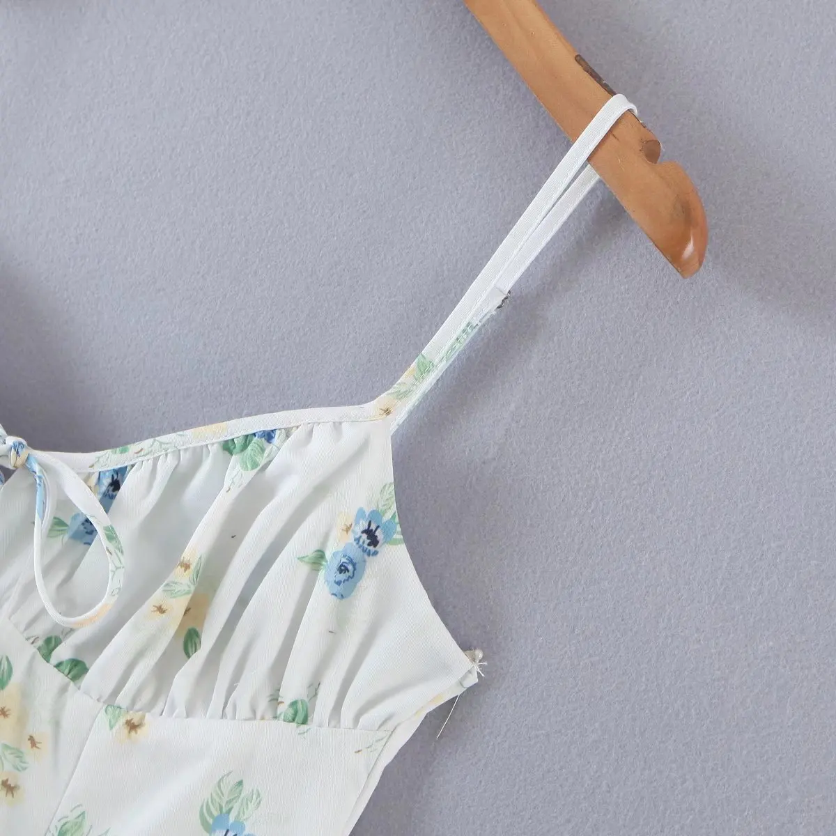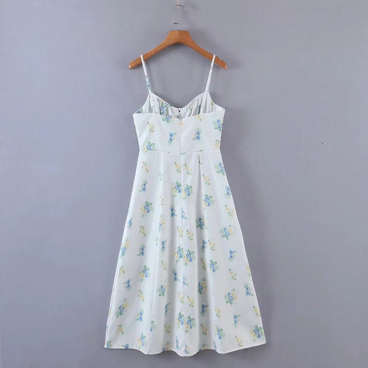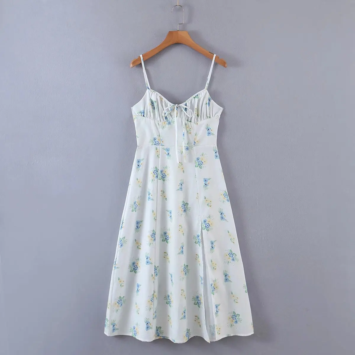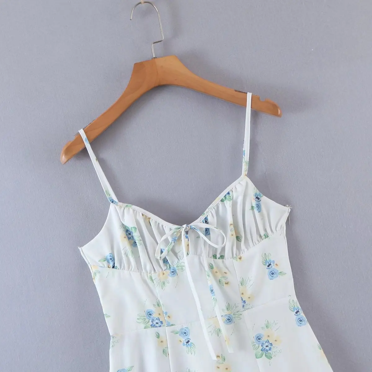 R20047S 2022 Summer sexy dress women's flower print sling slit backless loose dress