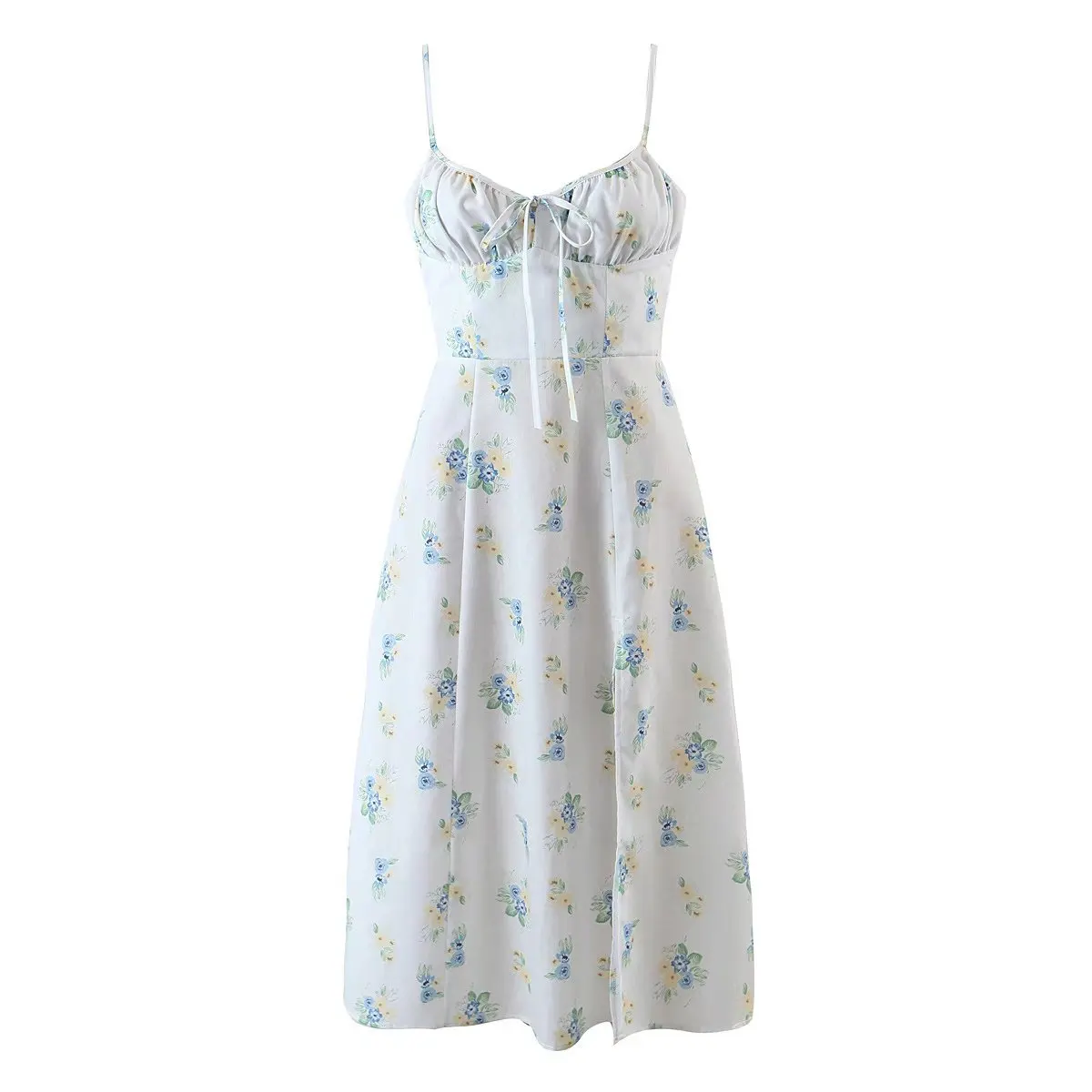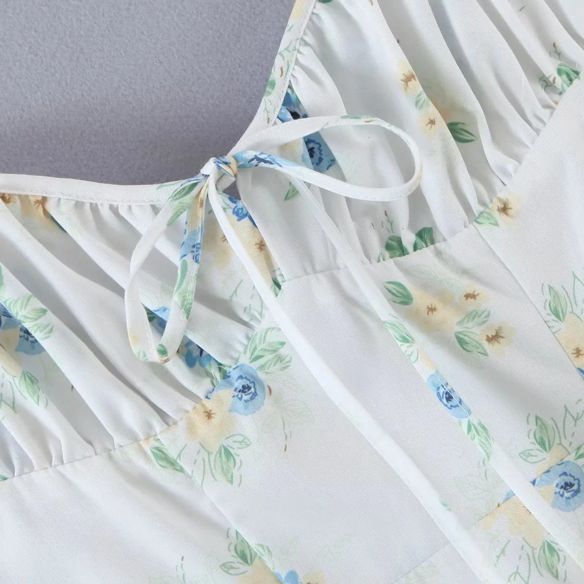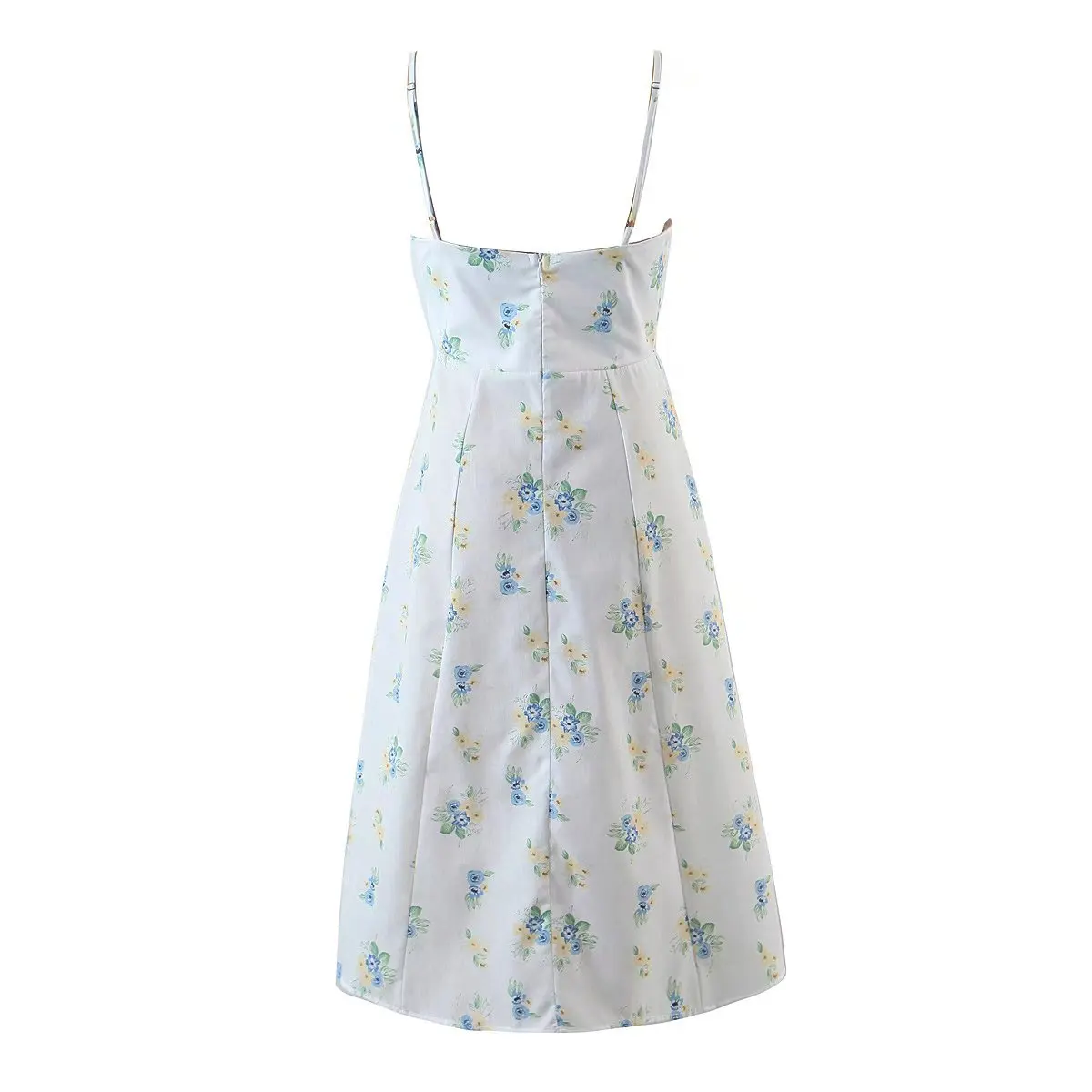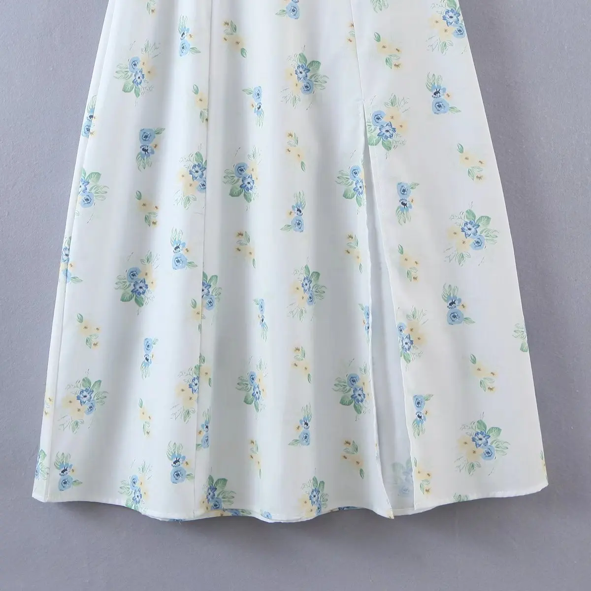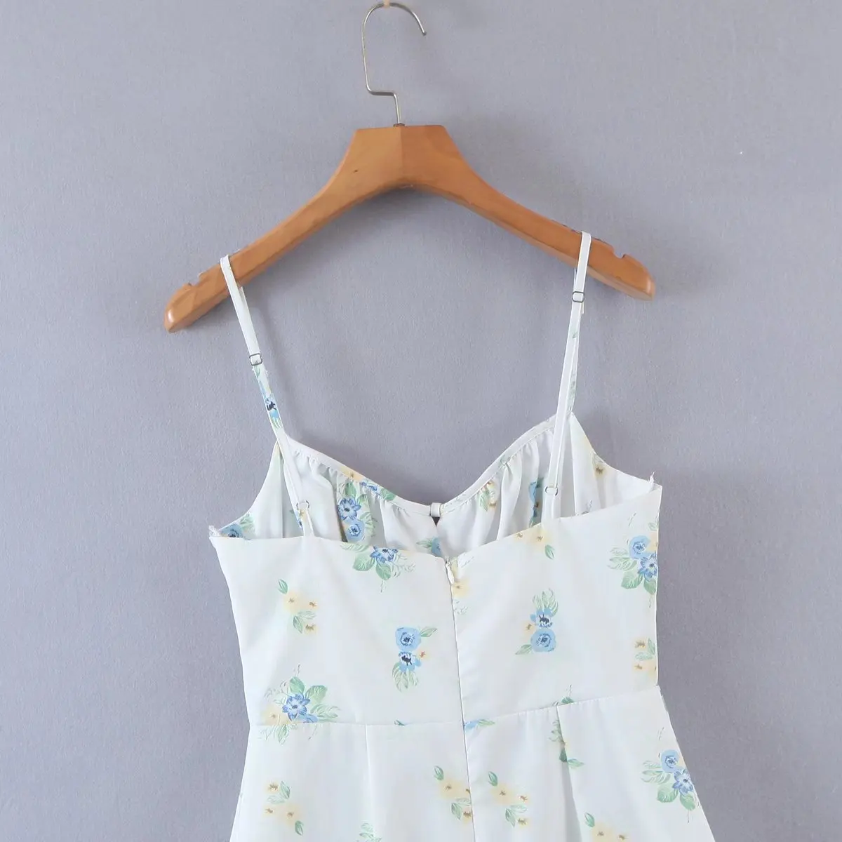 R20047S 2022 Summer sexy dress women's flower print sling slit backless loose dress