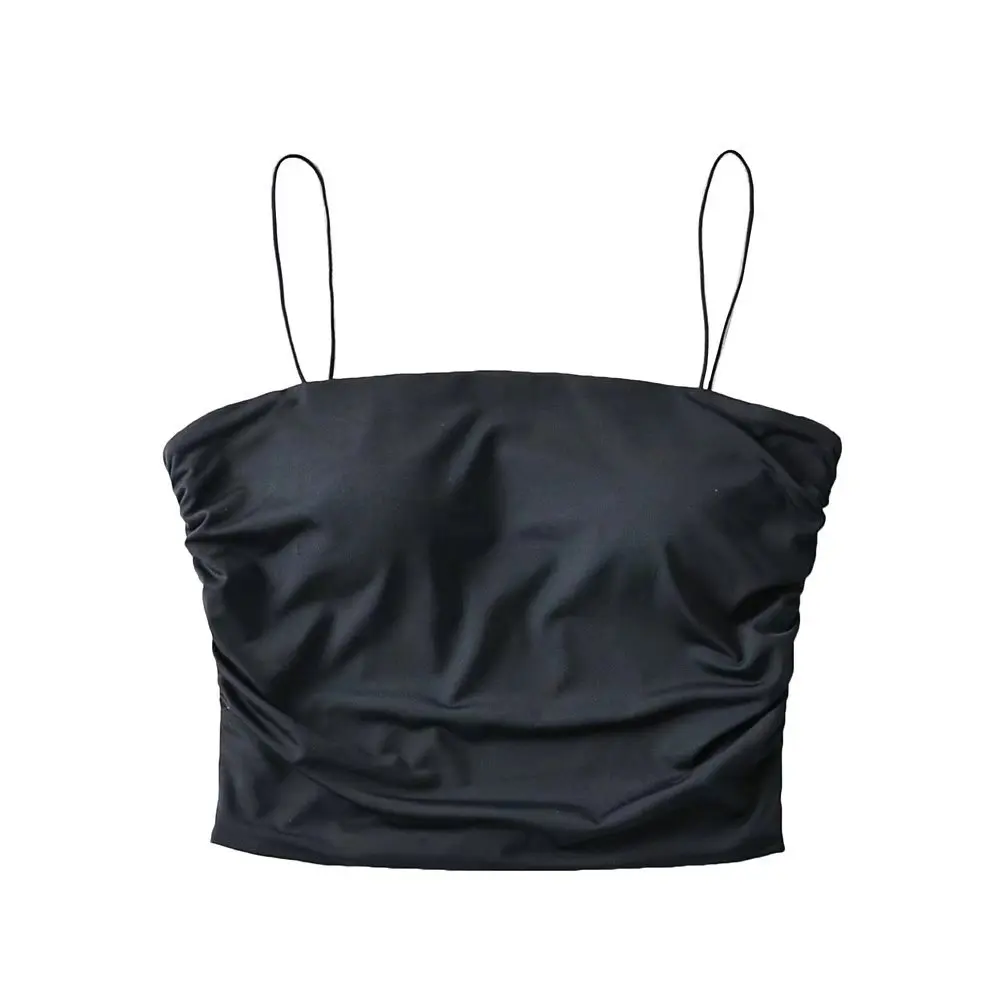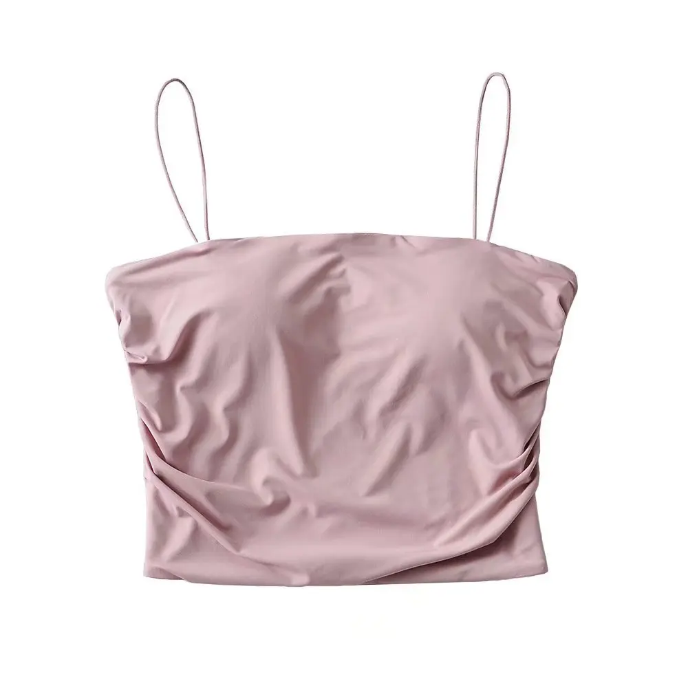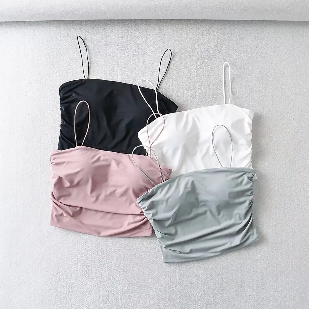 R20079S New arrivals spring ladies solid color three-layer side wrinkled suspenders slim tank tops