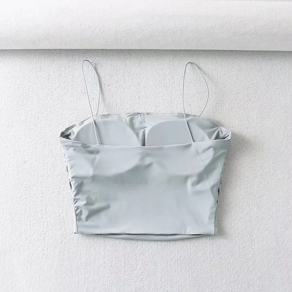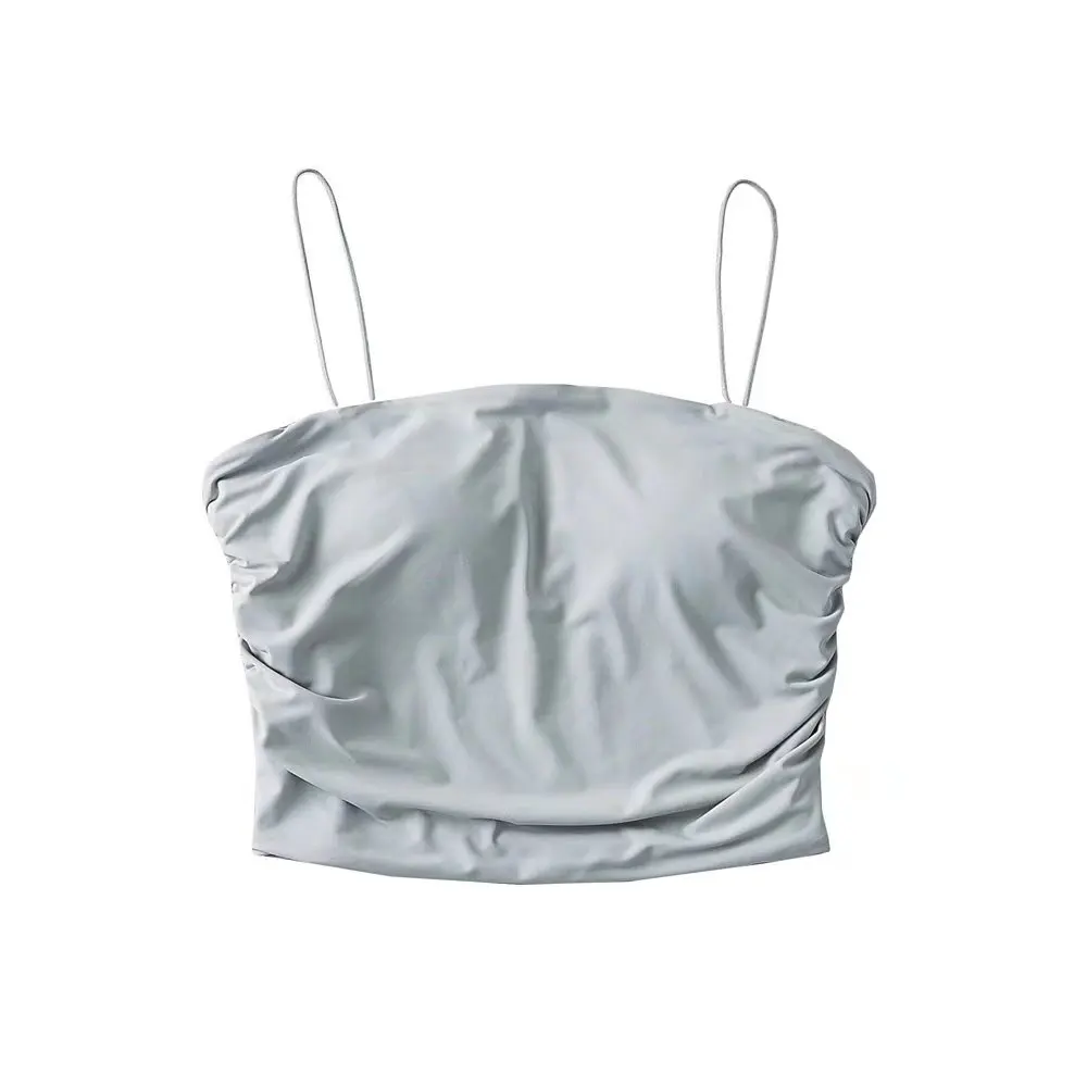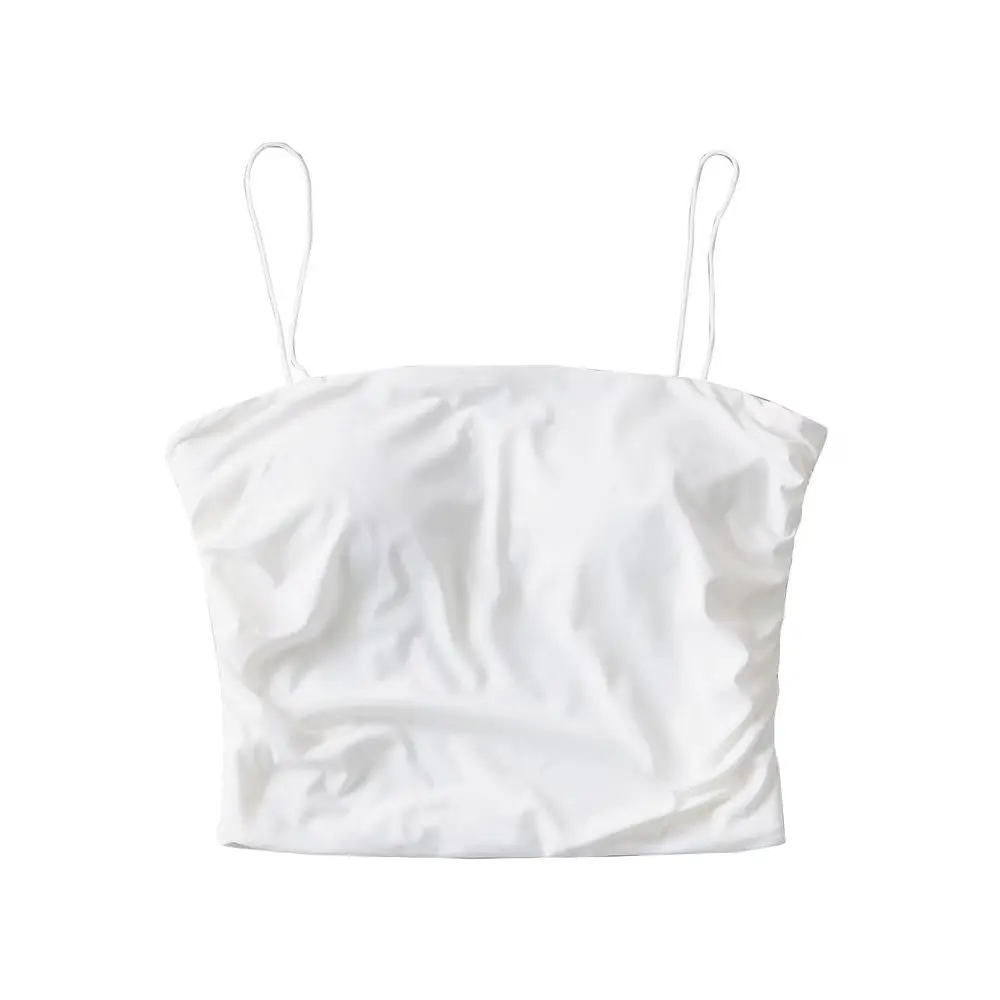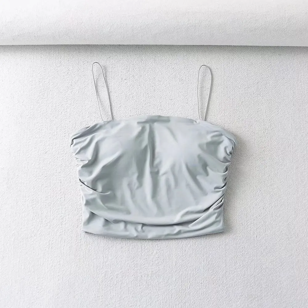 R20079S New arrivals spring ladies solid color three-layer side wrinkled suspenders slim tank tops