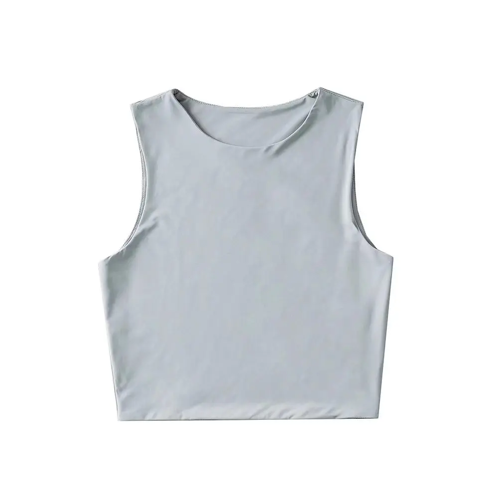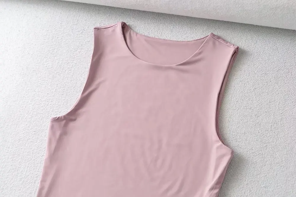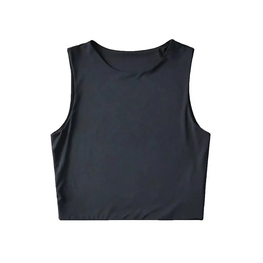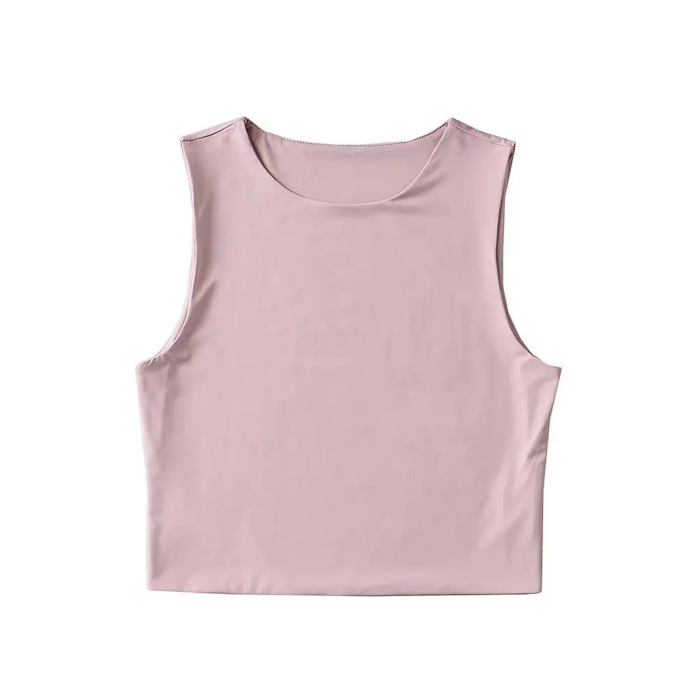 R20080S Ladies new summer fashion solid color double layer o-neck sleeveless T-shirt tank tops