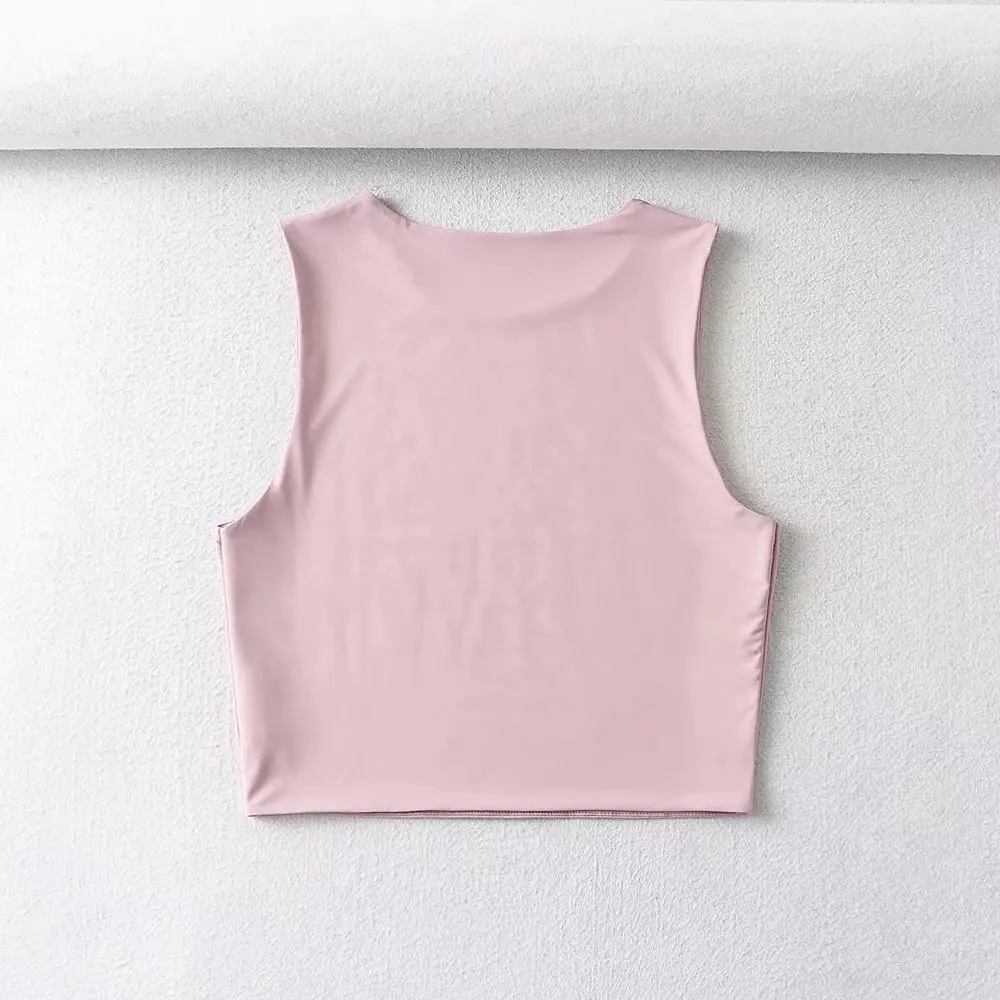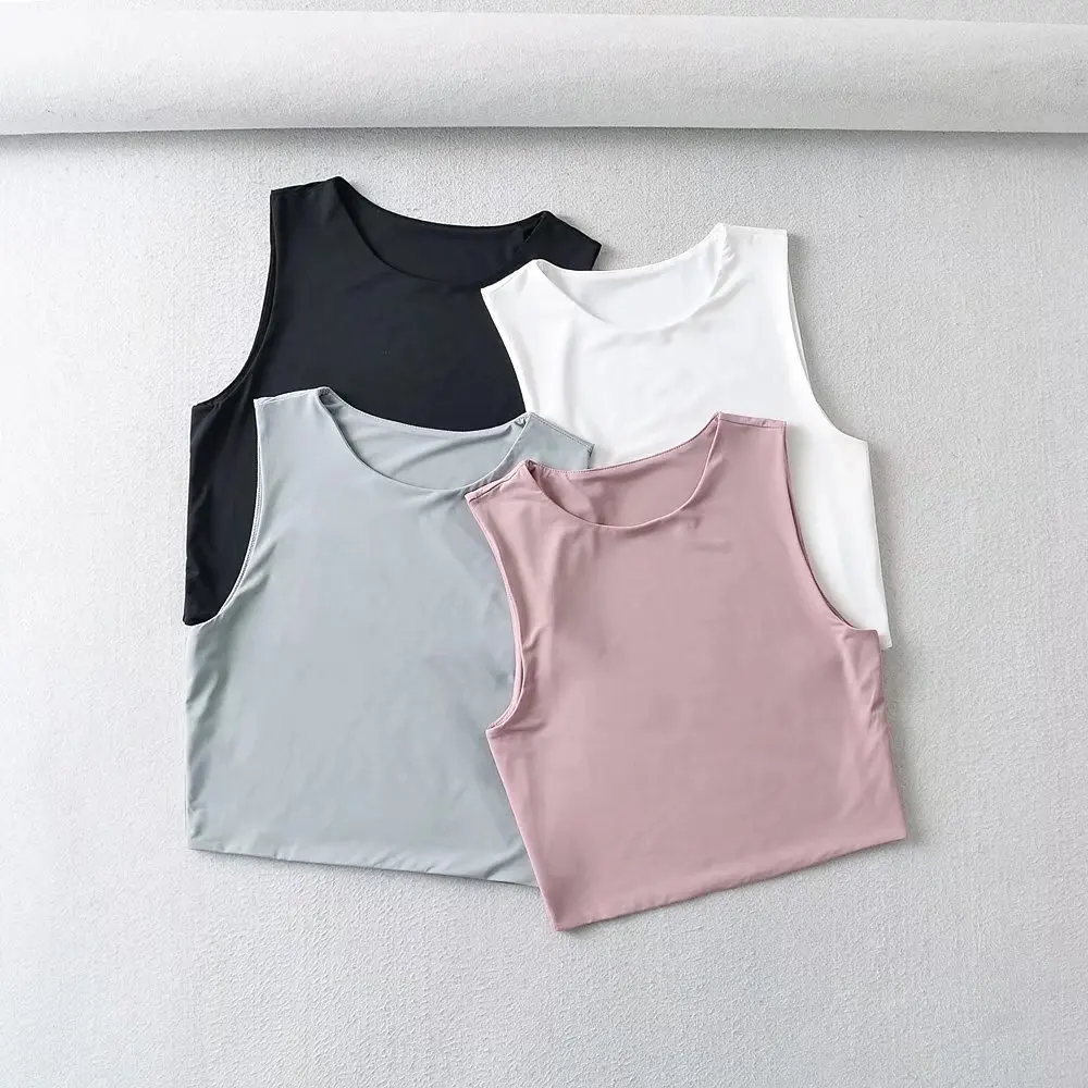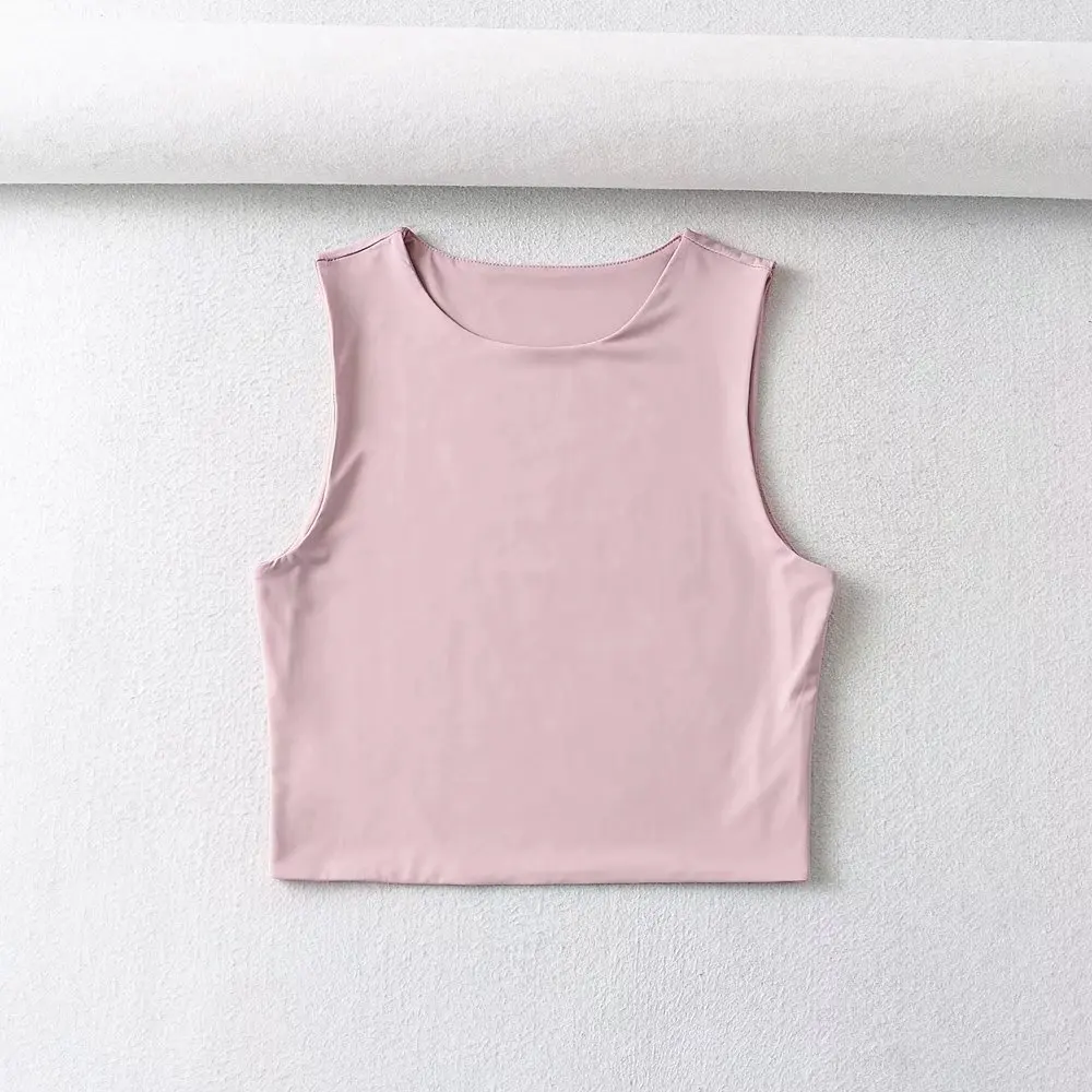 R20080S Ladies new summer fashion solid color double layer o-neck sleeveless T-shirt tank tops