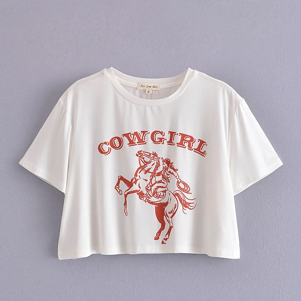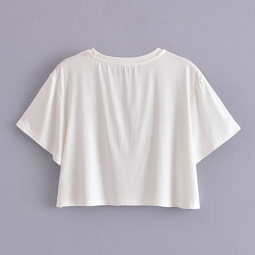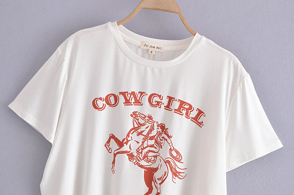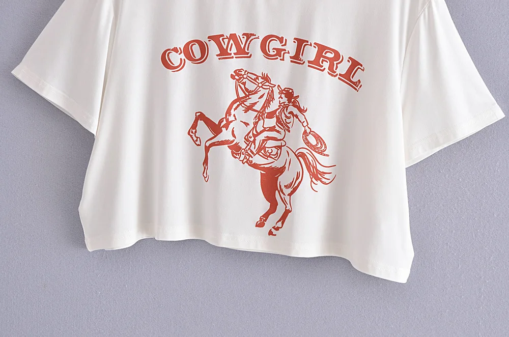 R20088S Women's clothing t-shirt top casual cotton denim girl print short slim T-shirt