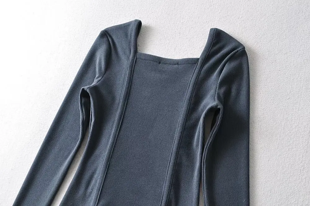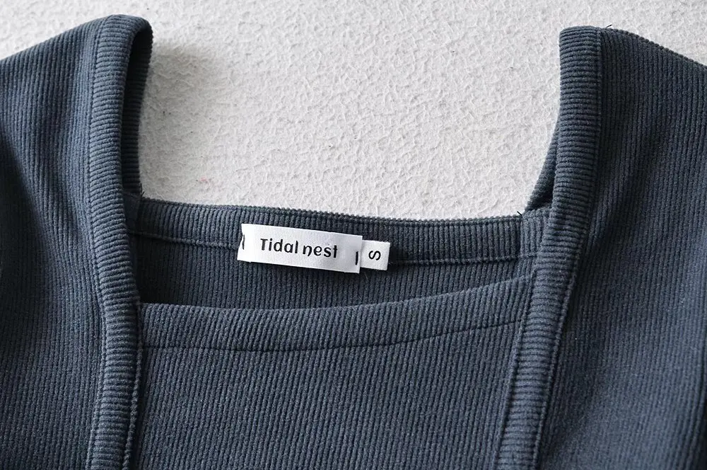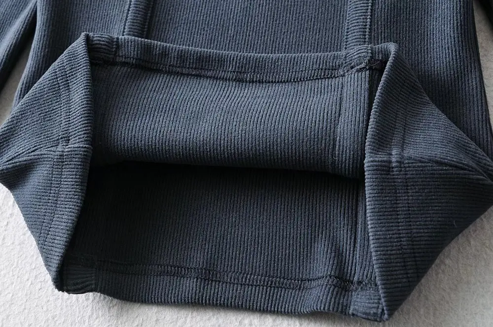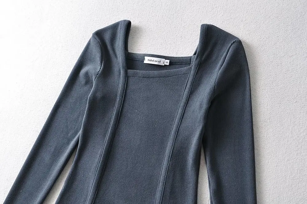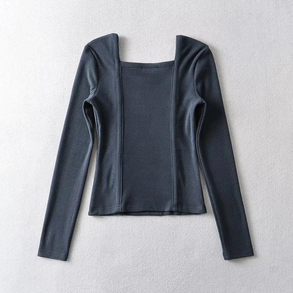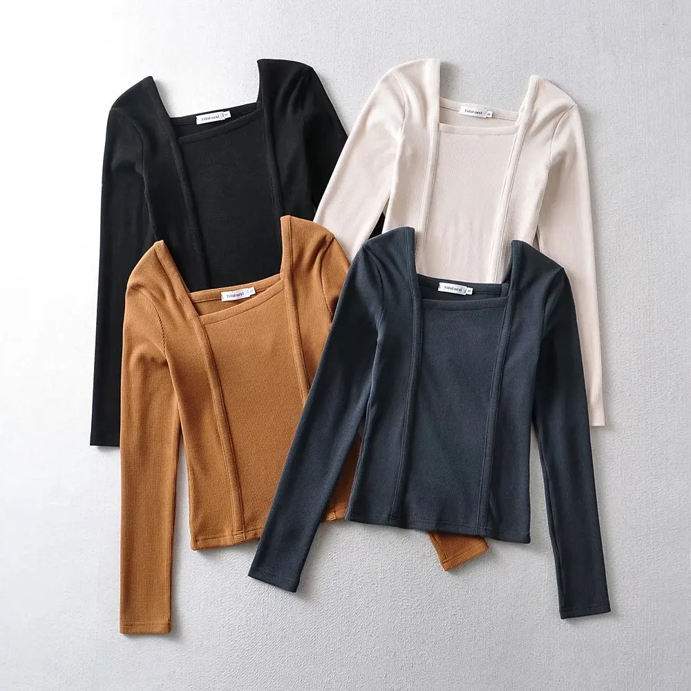 R20122S Women's fashion solid color front pressure line asymmetric front collar bottoming top knitted shirt tops
