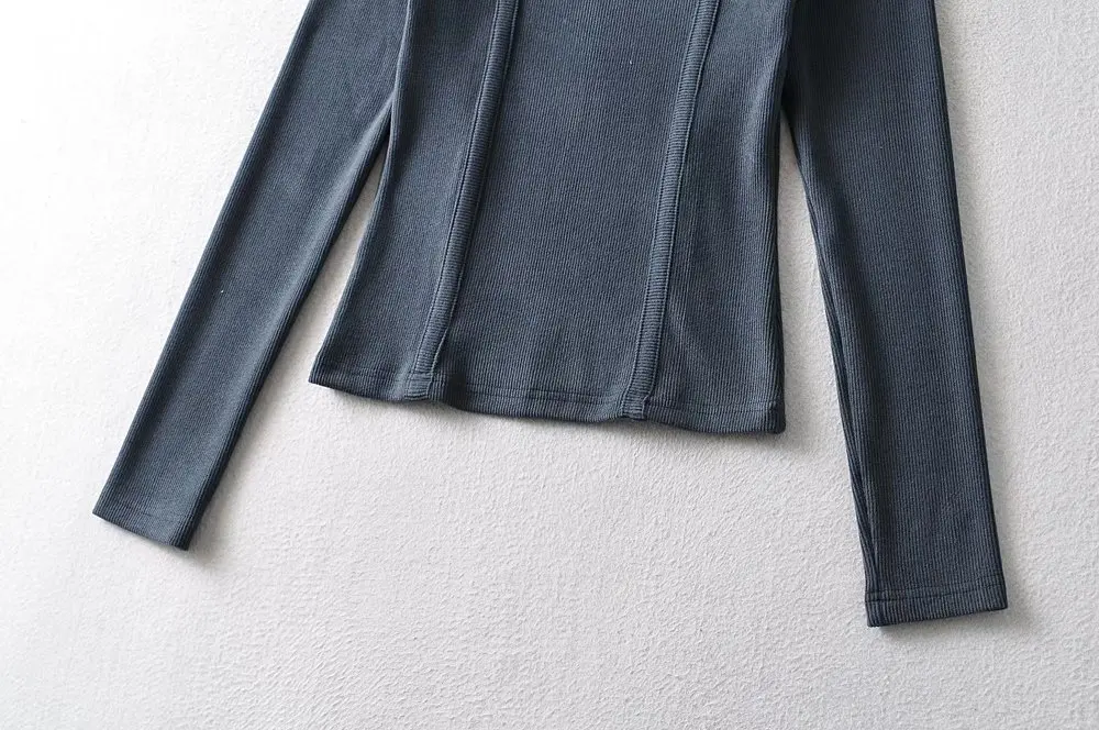 Women's fashion solid color front pressure line asymmetric front collar bottoming top knitted shirt tops