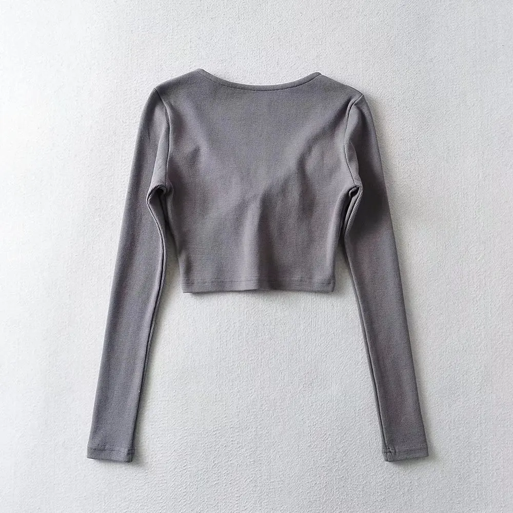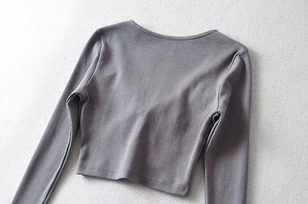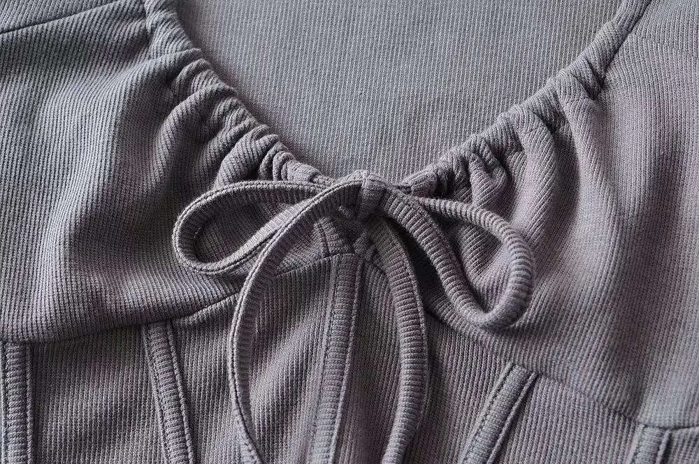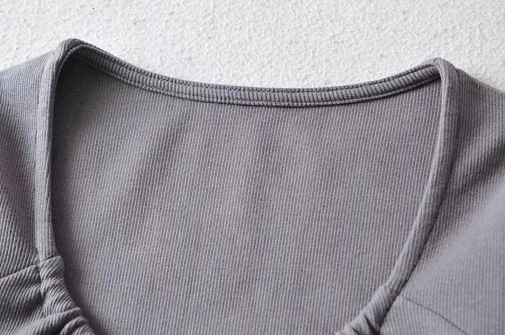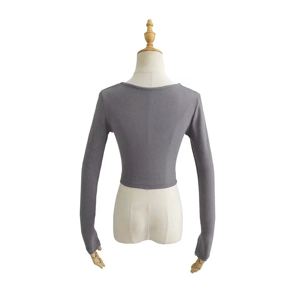 R20129S 2022 New design women's fashion solid color slim short drawstring fishbone stickers long-sleeved T-shirt