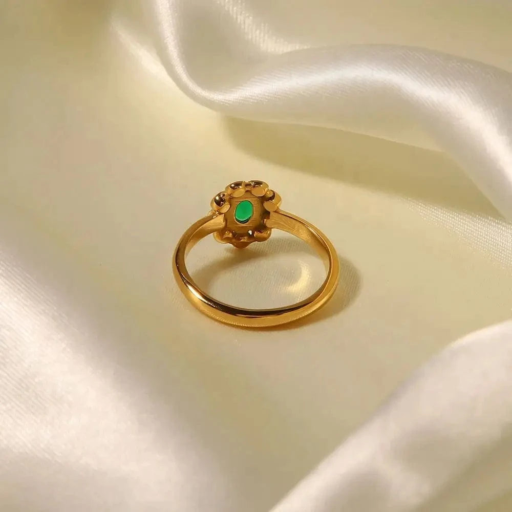 R2015 White Pearl Shiny Cubic Zircon SunFlower Ins Fashion 18K PVD Gold Plated Stainless Steel Stacking Ring