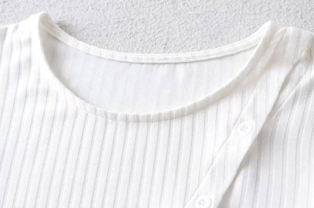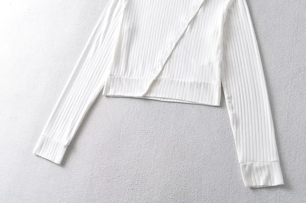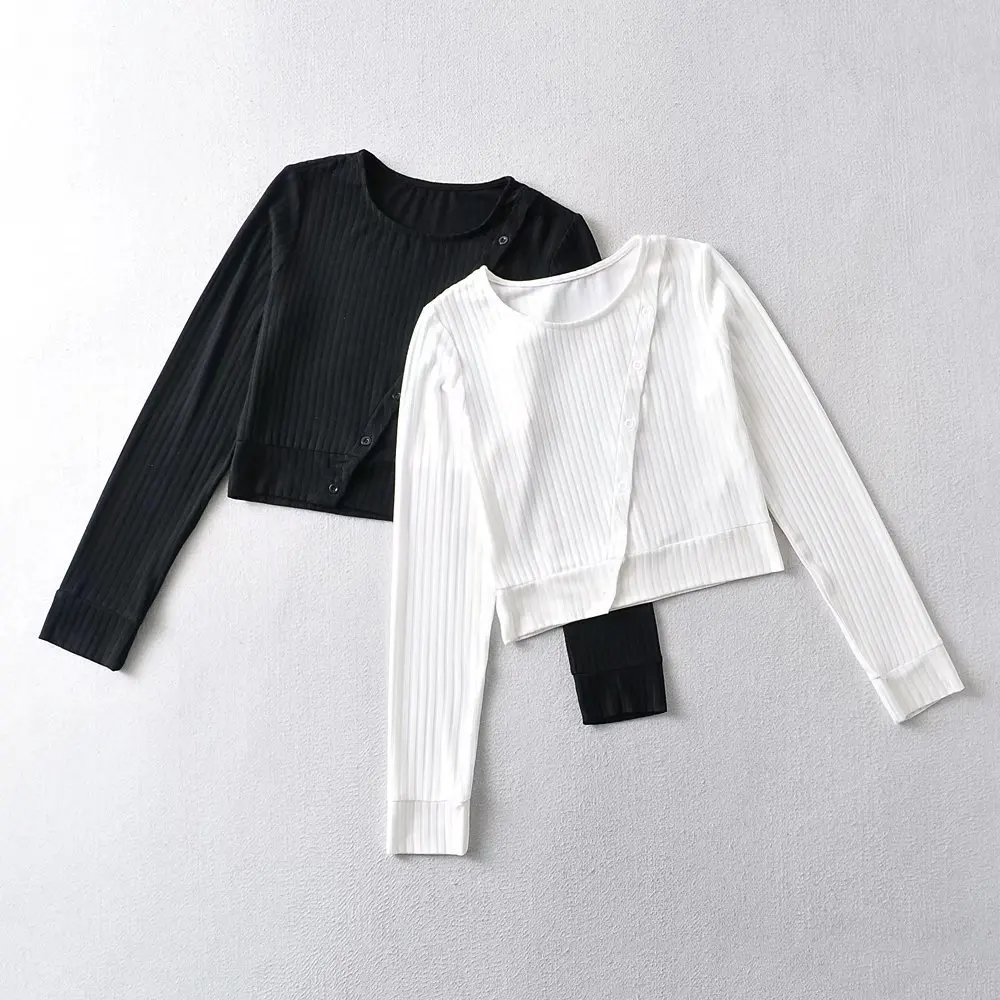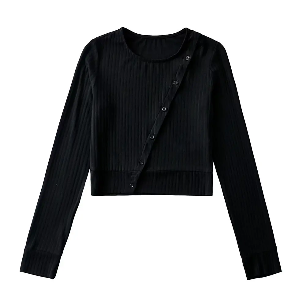 R20151S Ladies fashion spring solid color beveled button super soft wide-brimmed long-sleeved T-shirt top