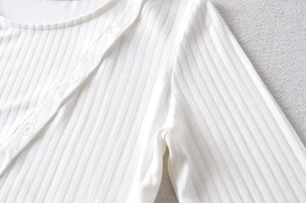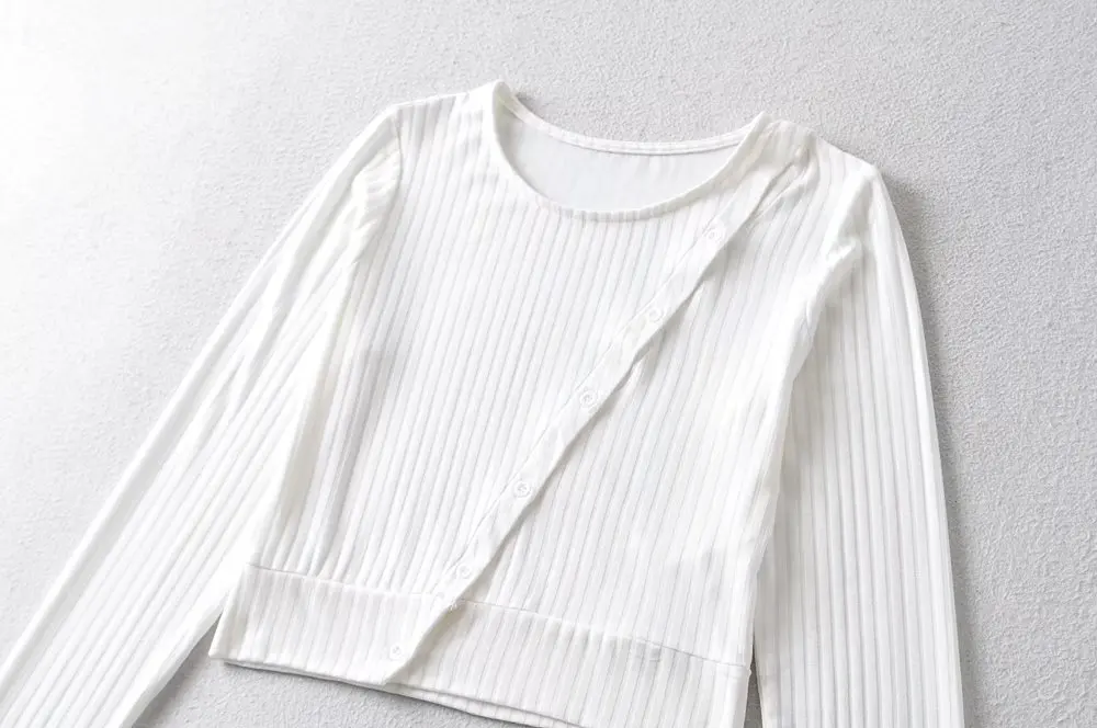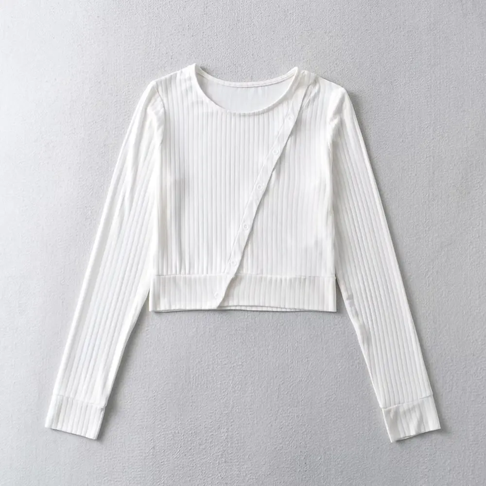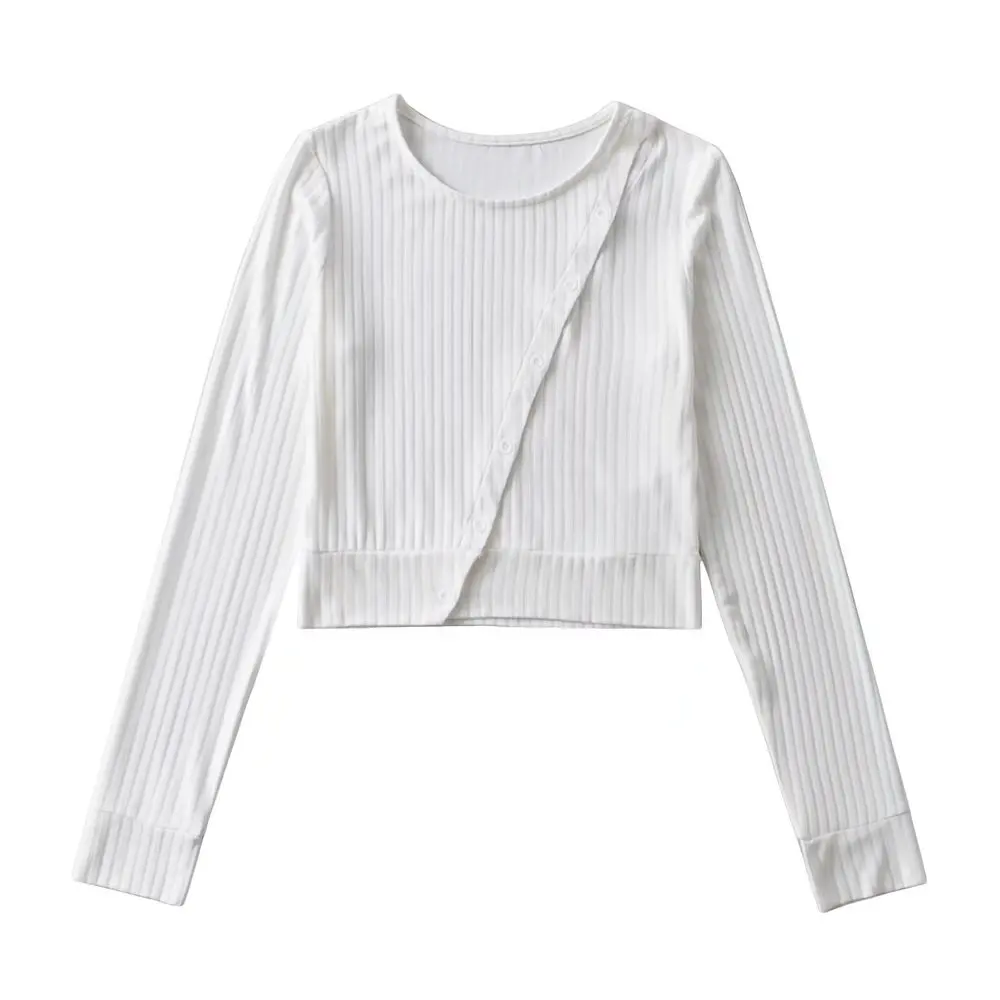 Ladies fashion spring solid color beveled button super soft wide-brimmed long-sleeved T-shirt top
