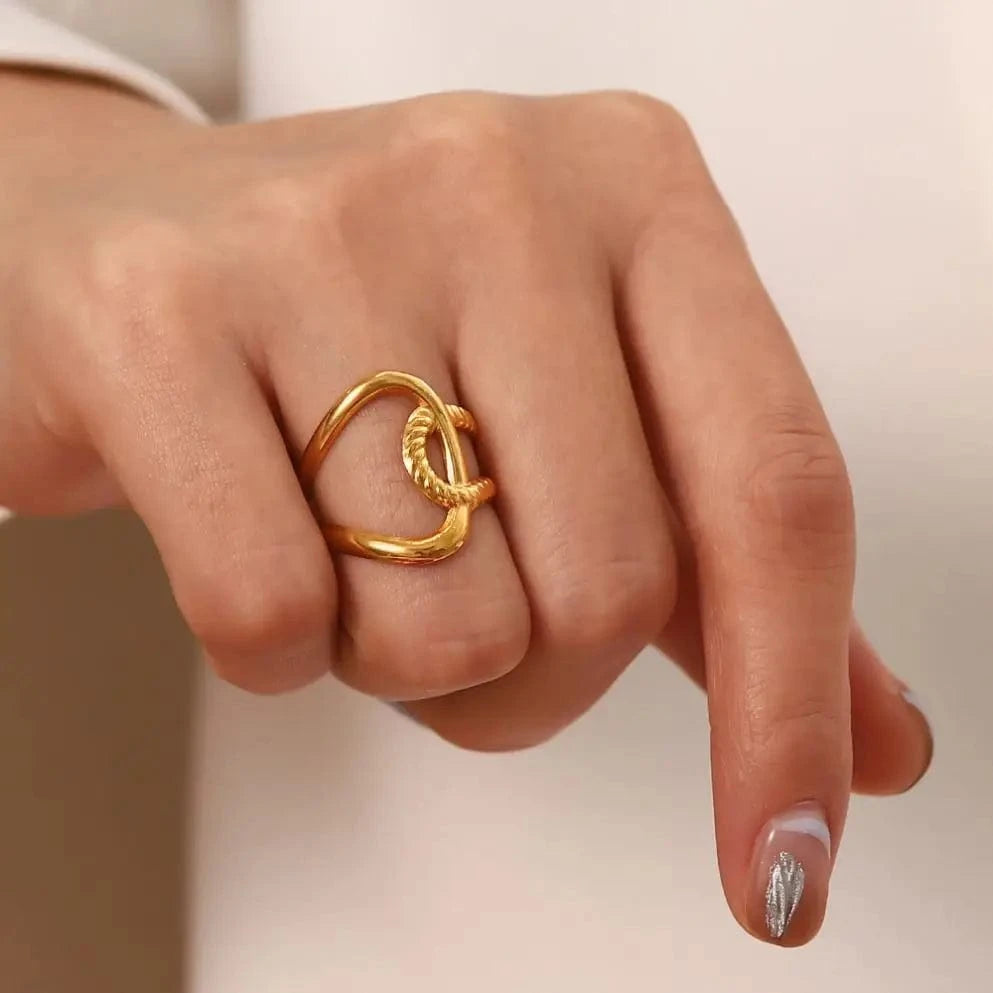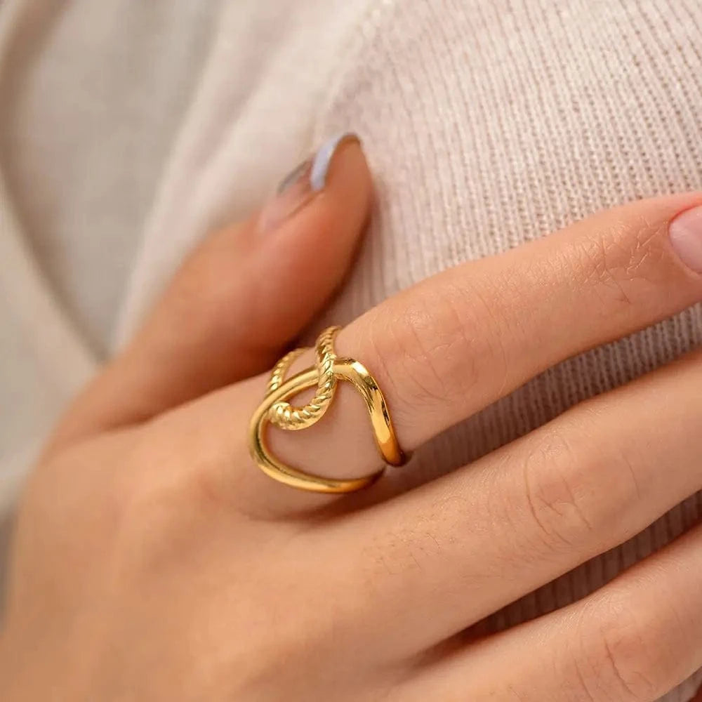 R2030 Waterproof 18k Gold Plated Stainless Steel Jewelry Adjustable Twist Charm Opening Rings for Women