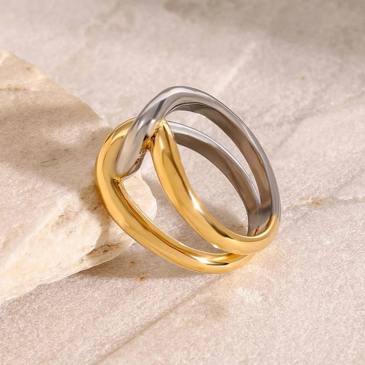 R2469 18K Gold PVD Plated Stainless Steel Ring Men Women Two Tone Color Matching Irregular Winding Ring No. 7