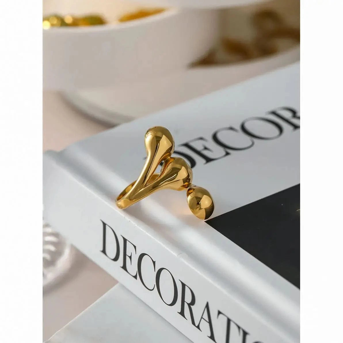 R2657 Designer 18K Gold Plated Stainless Steel Irregular Statement Ring Women Geometric Simple Open Rings