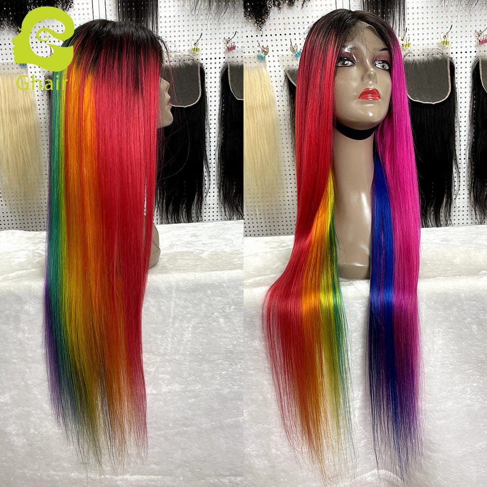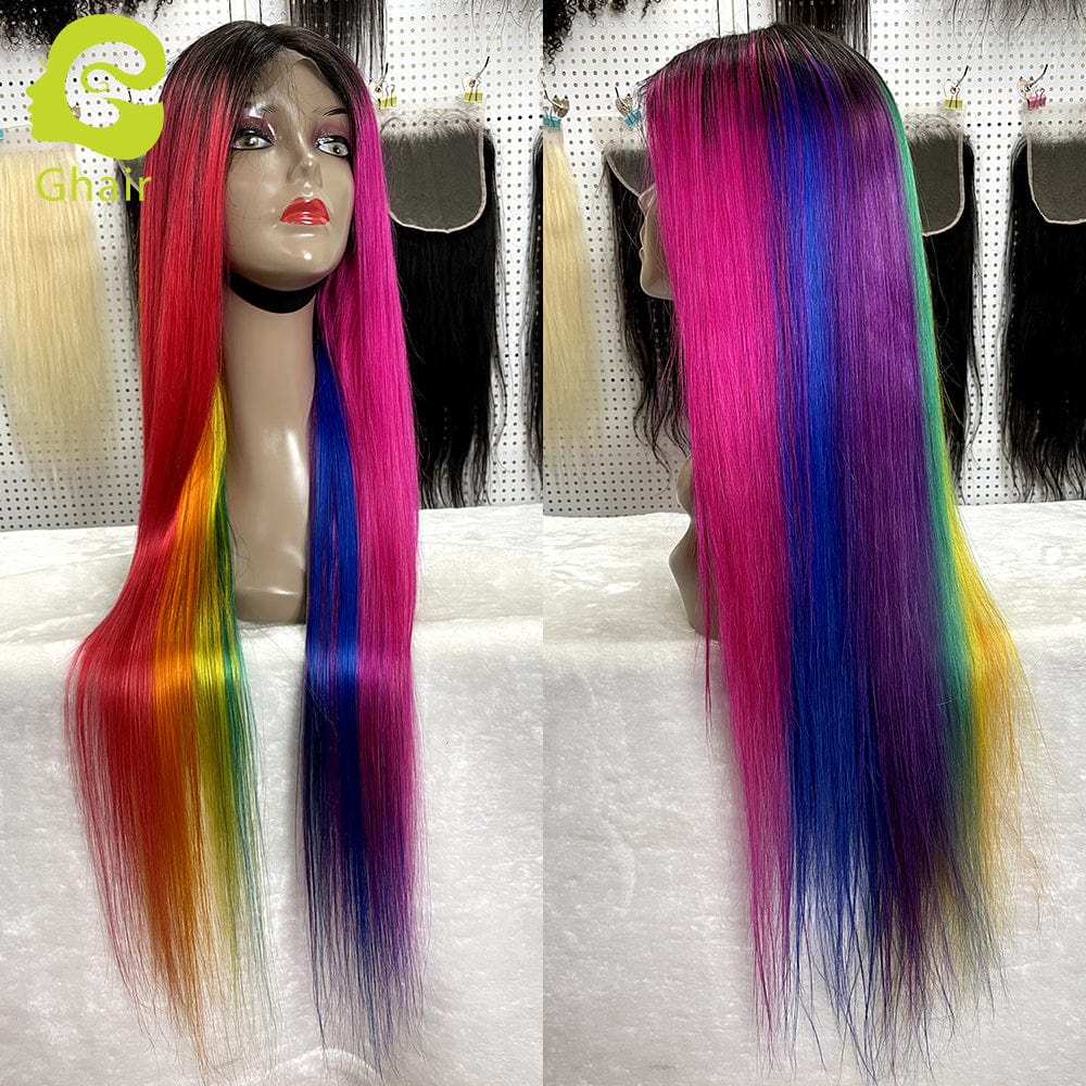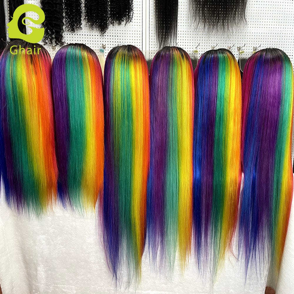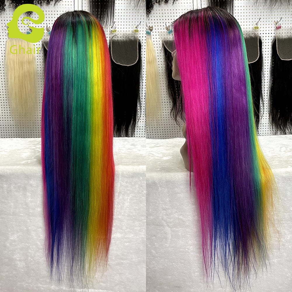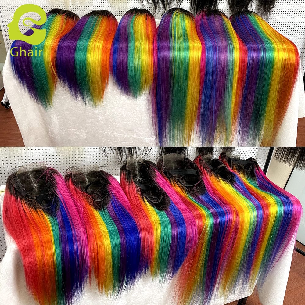 Rainbow new design human wig Raw Brazilian Cuticle Aligned Hair Lace Closure Wig 4x4 Lace Closure Wig Vendors