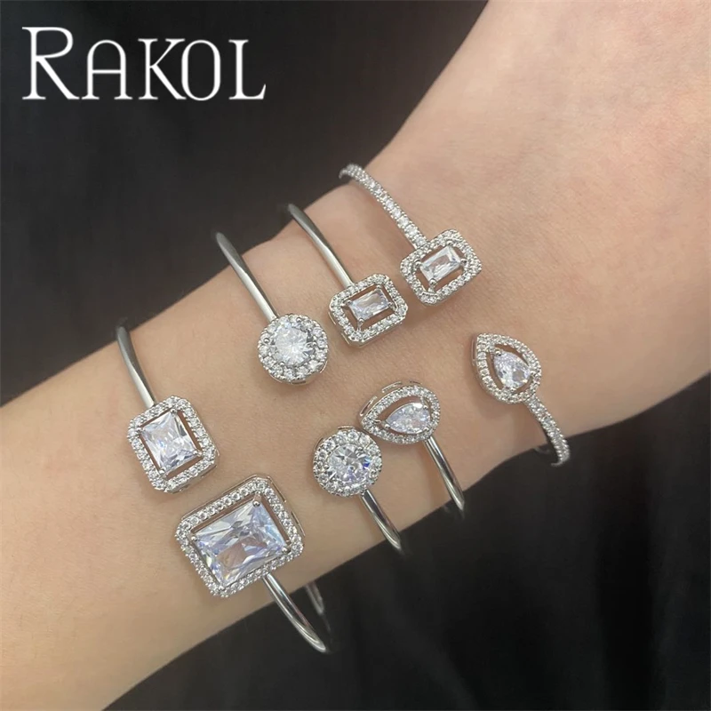 RAKOL BP2154 luxury dubai Indian ice out cubic zirconia bridal bracelets & bangles Girls bridal bangle bracelet women