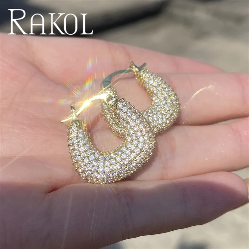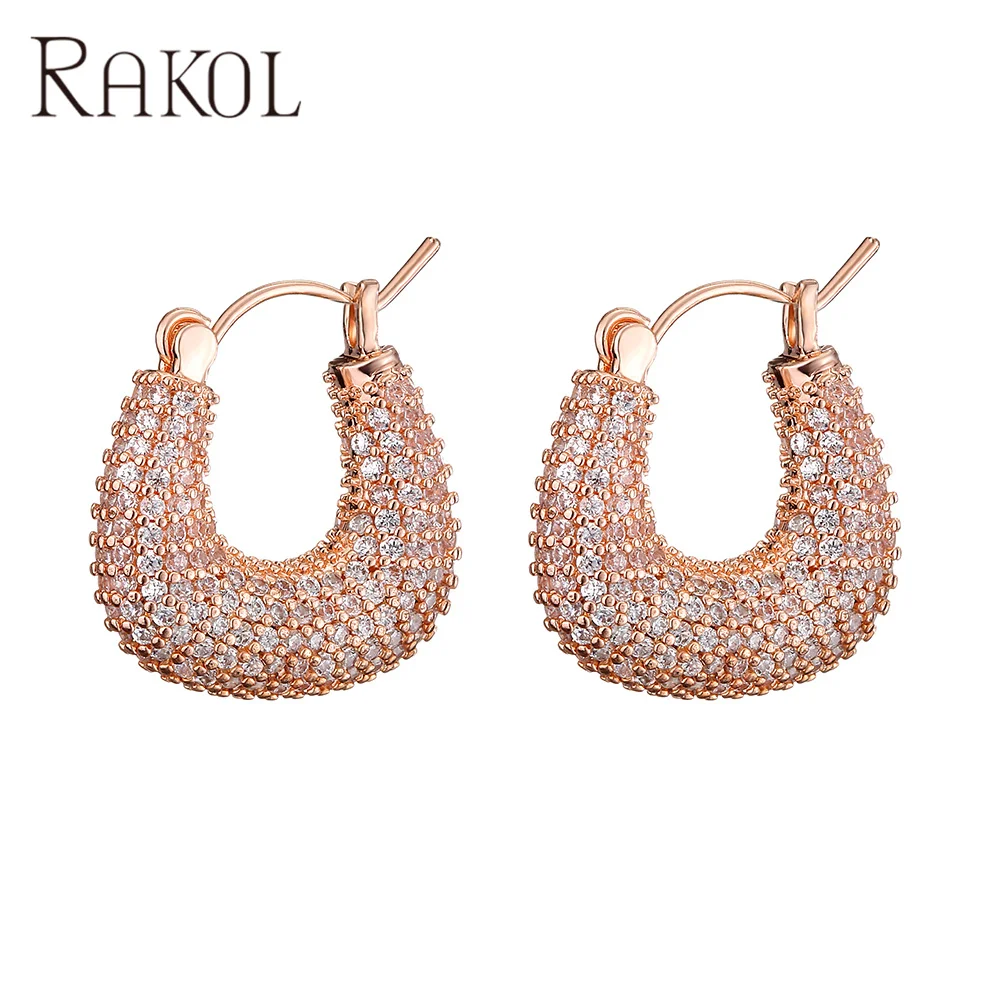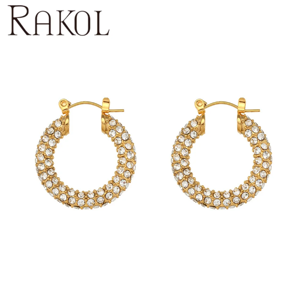 RAKOL EP1043 Luxury Zirconia Earrings 18k Gold Pvd Plated Gold Sparkling Party Hoop Earrings Fast &a