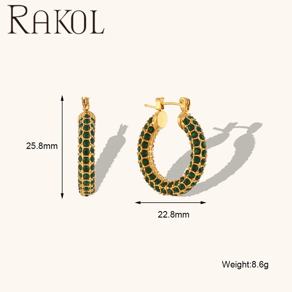 RAKOL EP1043 Luxury Zirconia Earrings 18k Gold Pvd Plated Gold Sparkling Party Micropave Stainless Steel Hoop Earrings Fast