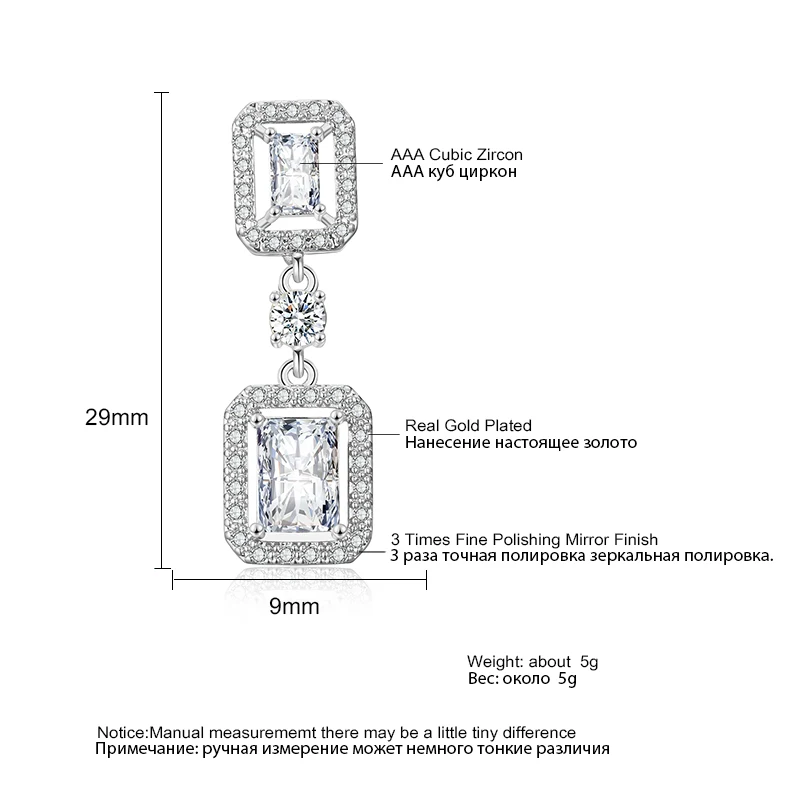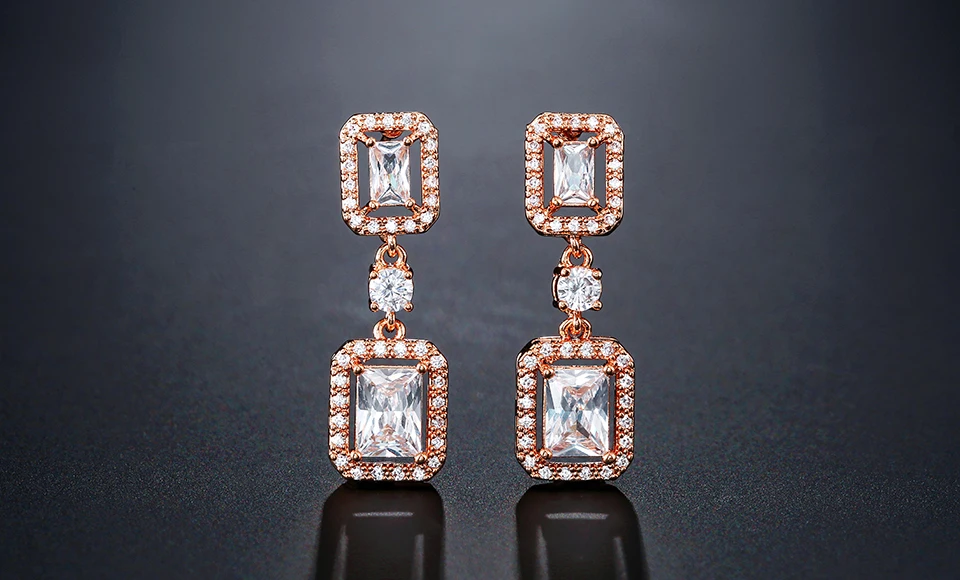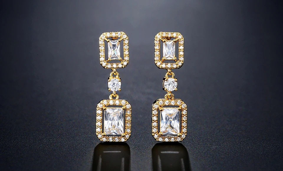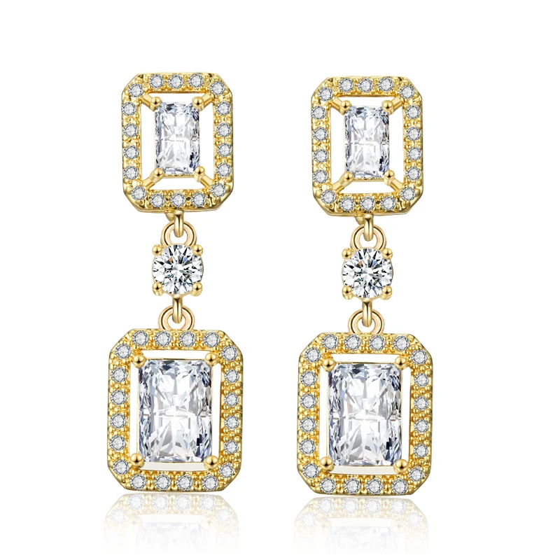 RAKOL EP2449 ladies high quality luxury gold plated zircon crystal square drop earrings jewelry fashion wedding bridal earrings