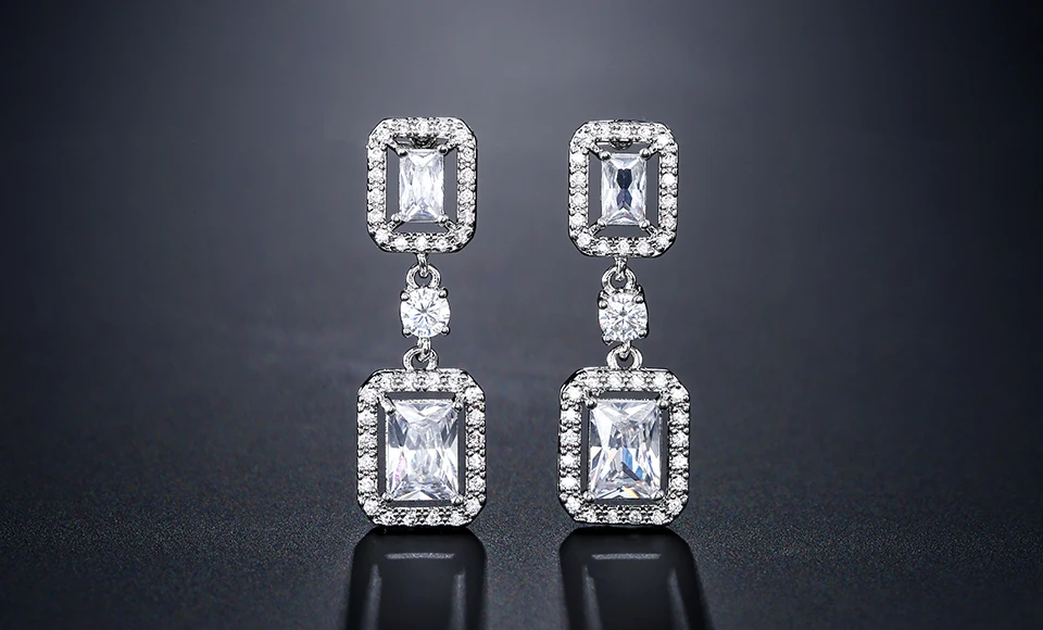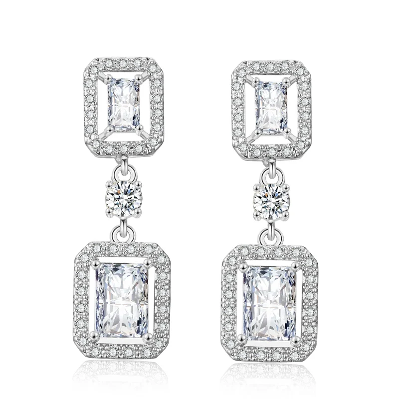 RAKOL EP2368 Classic geometric square shiny zircon earrings luxury bridal wedding party earrings for girls and women