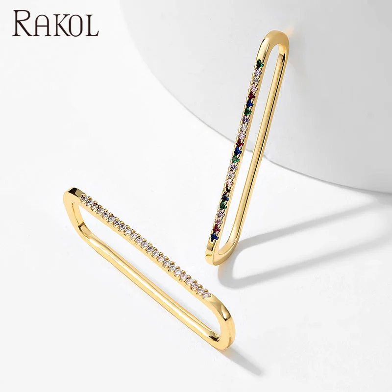 RAKOL EP2586 Elegant Jewellery Diamond Cartilage Bar Ear Cuff Earring 925 Sterling Silve 18k Gold Earring