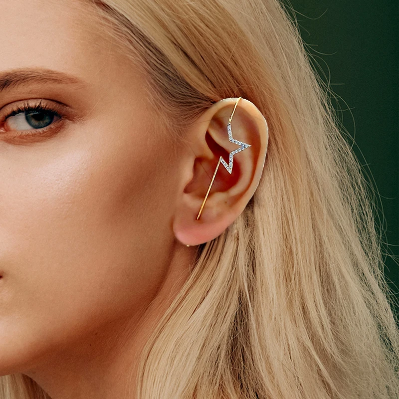 RAKOL EP2589 wholesale Women's minimalist korean fashion ear cuff earrings gold plated custom rhinestone cuff earrings