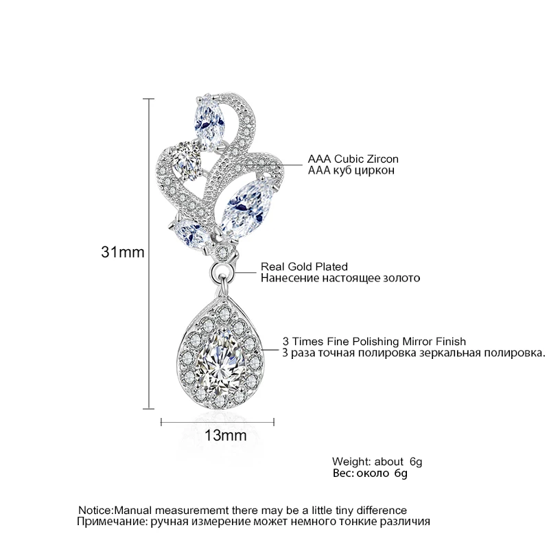 RAKOL EP2971 Luxury women 18K gold plated drop cubic zirconia earrings fine jewelry zircon diamond earrings women