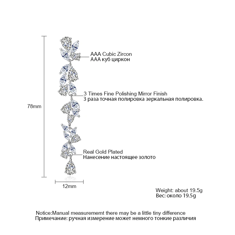 RAKOL EP2981 luxury women's gold plated long statement bridal earrings zirconia big earrings women