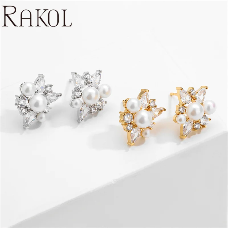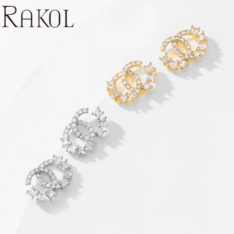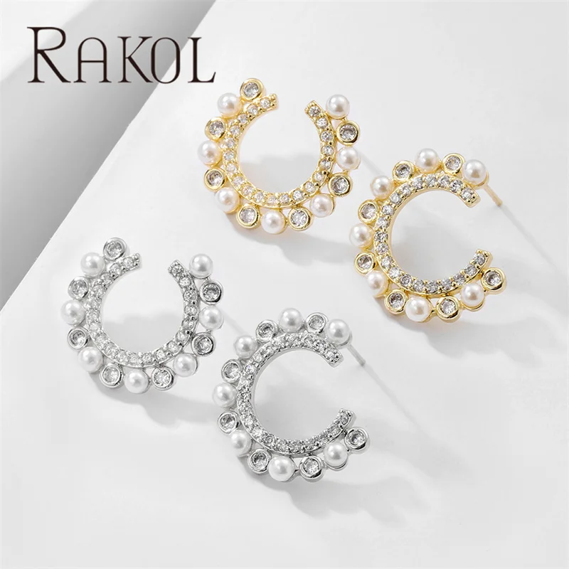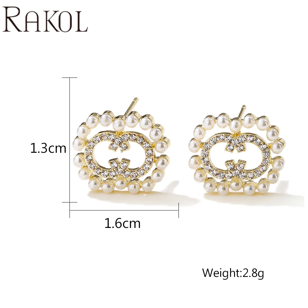 RAKOL EP5149 Luxury Famous Brands Designer High Quality Trendy Jewelry CC Pearl Stud Earrings Party for Women