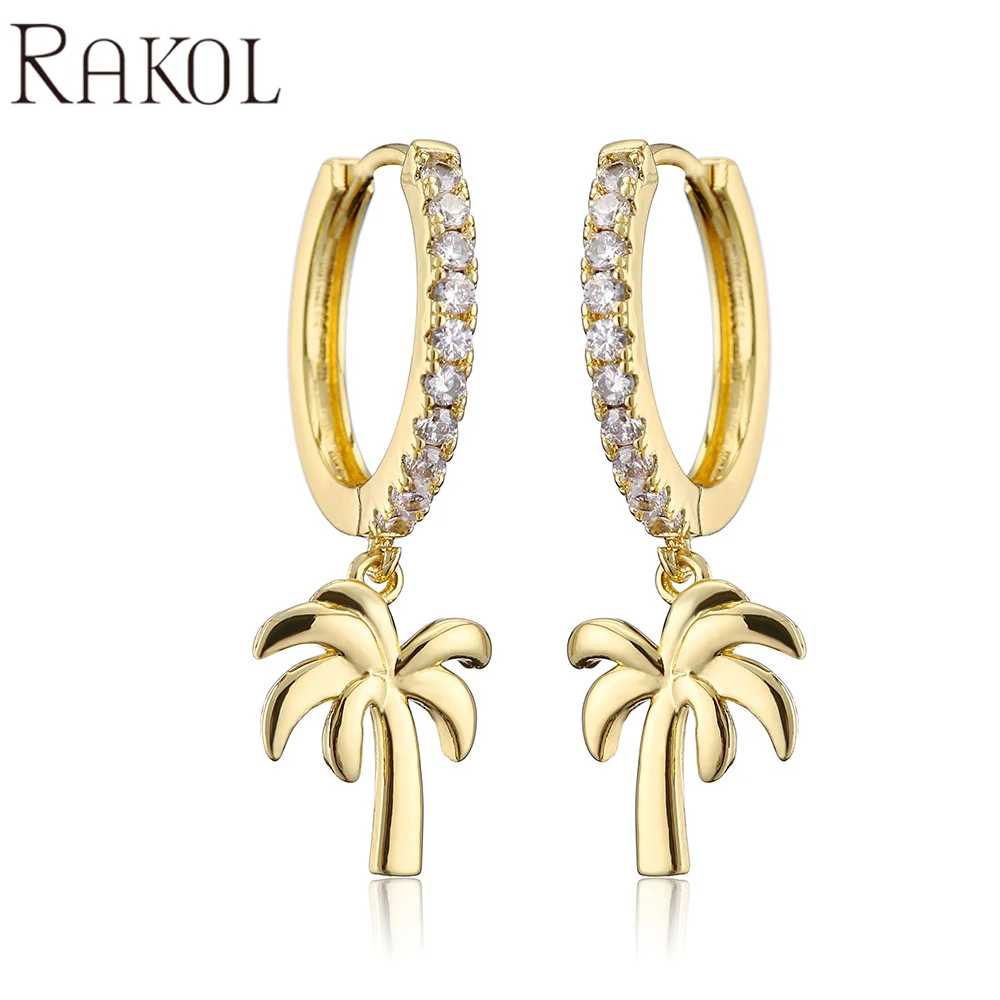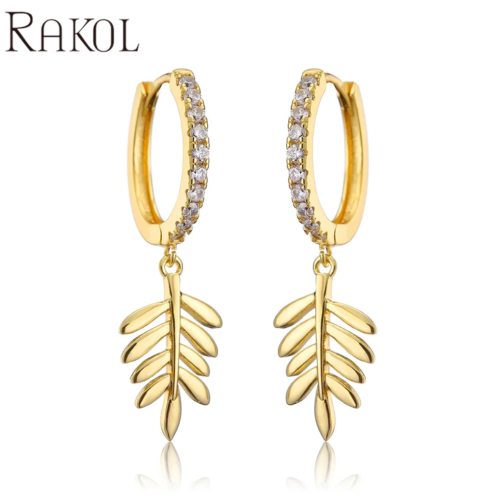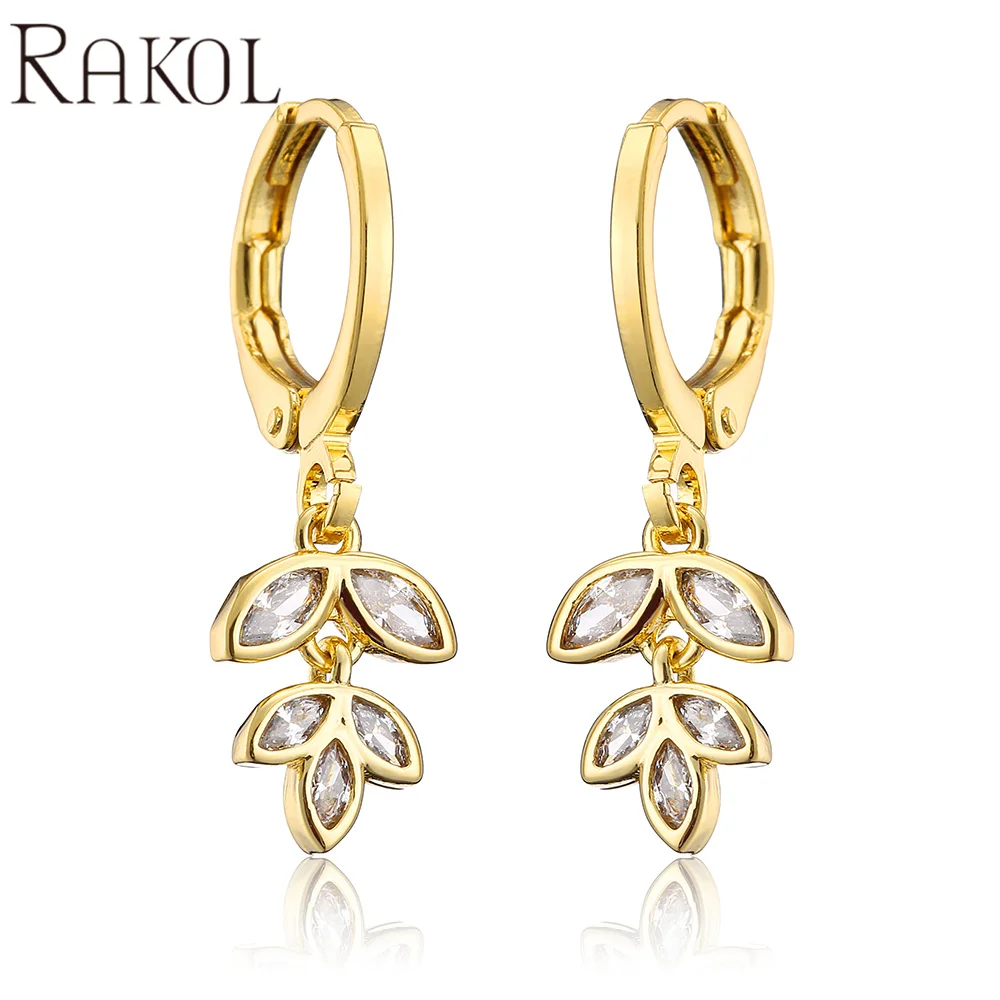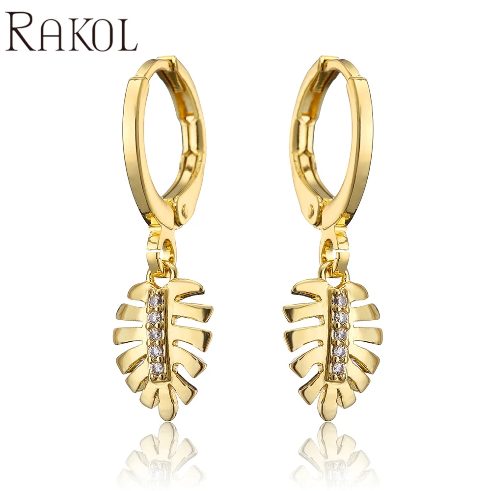 RAKOL EP5213 2022 new 18 k gold plated leaf fashion jewelry earrings leaf jewelry sets earrings zircon charm huggie earrings