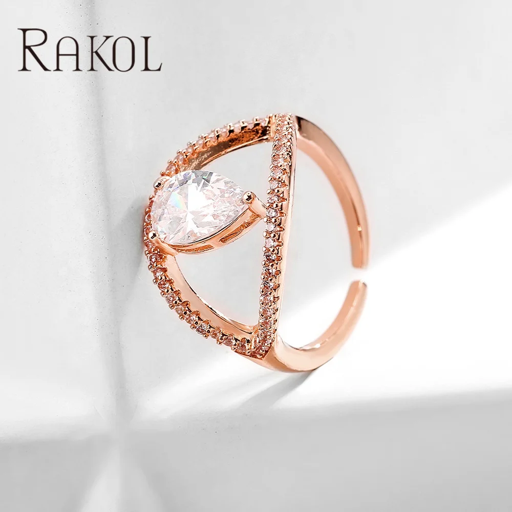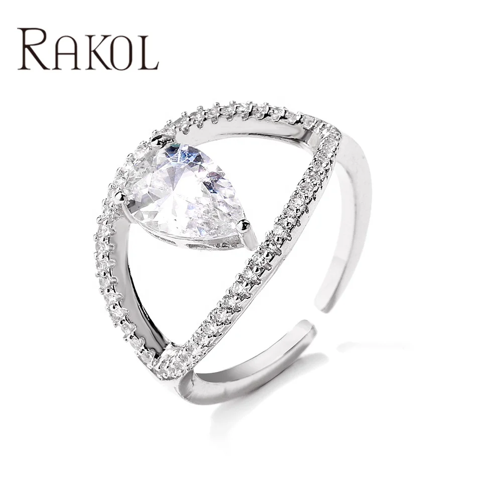 RAKOL RP2246 brand designs gold open rings diamond open ring 18 k gold jewelry CZ diamond crystal finger ring adjustable