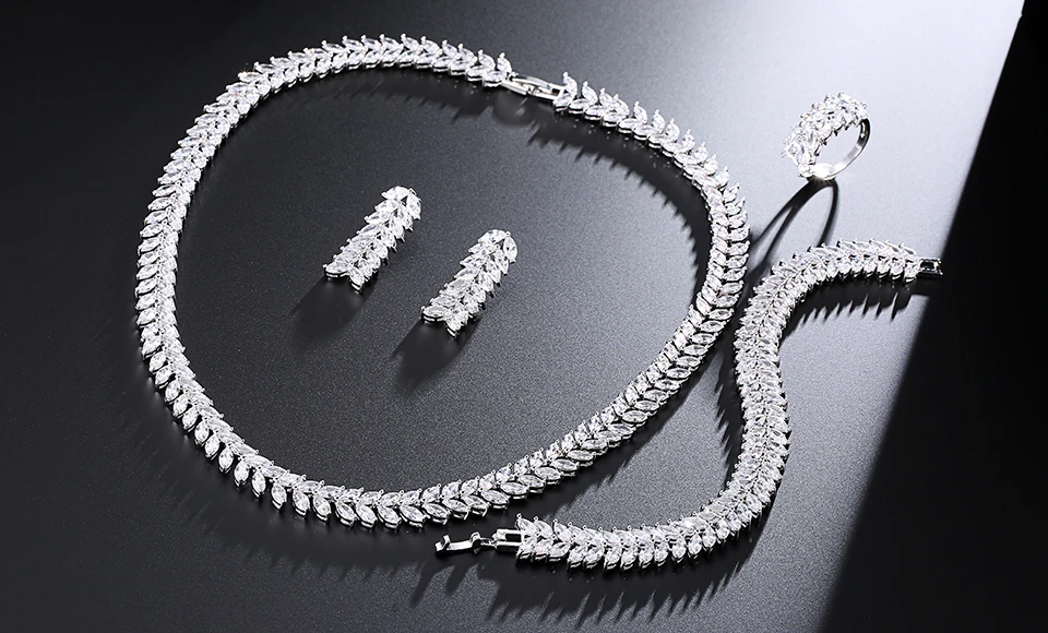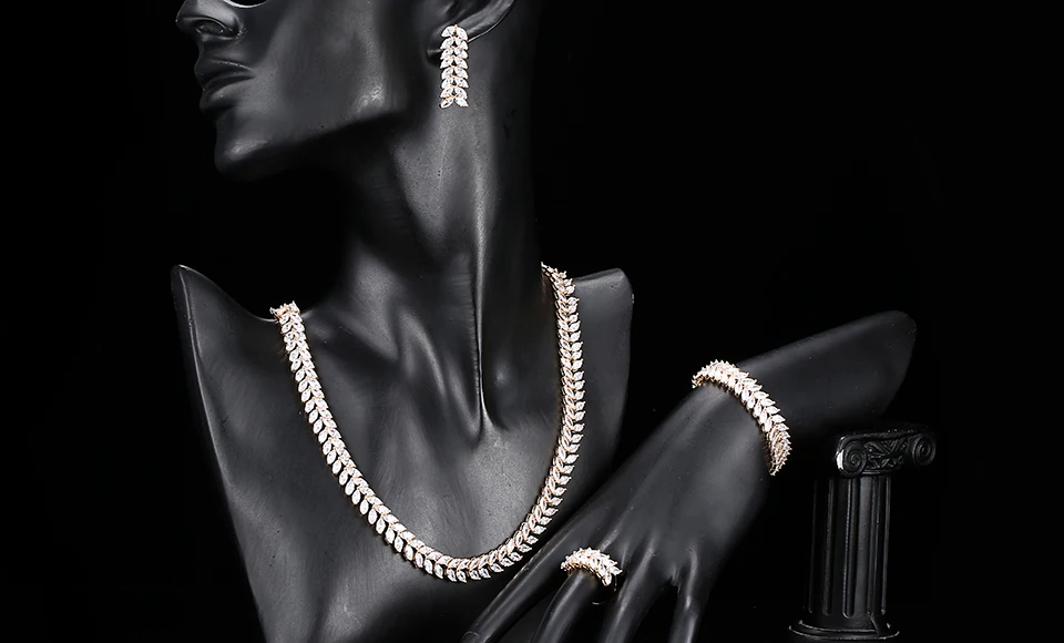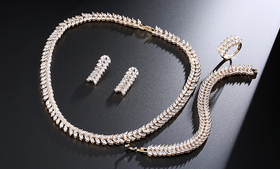 RAKOL SP289 Charm American Silver/Gold/Rose Gold Wheat Leaf CZ Zircon Necklace Four Piece Jewelry Set