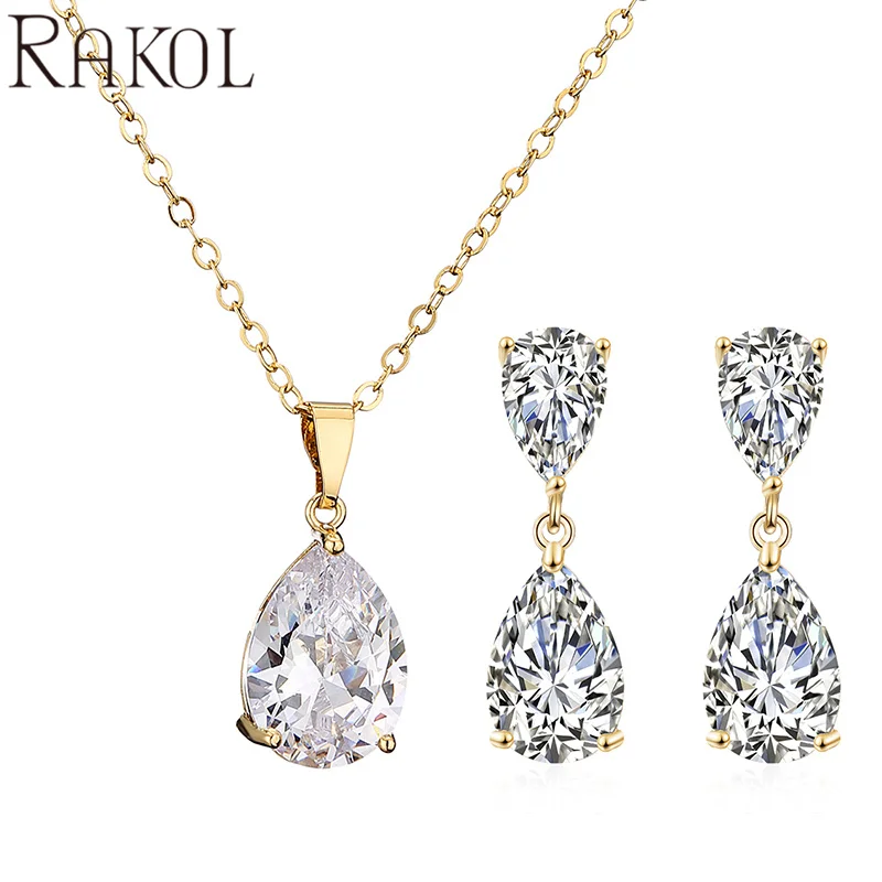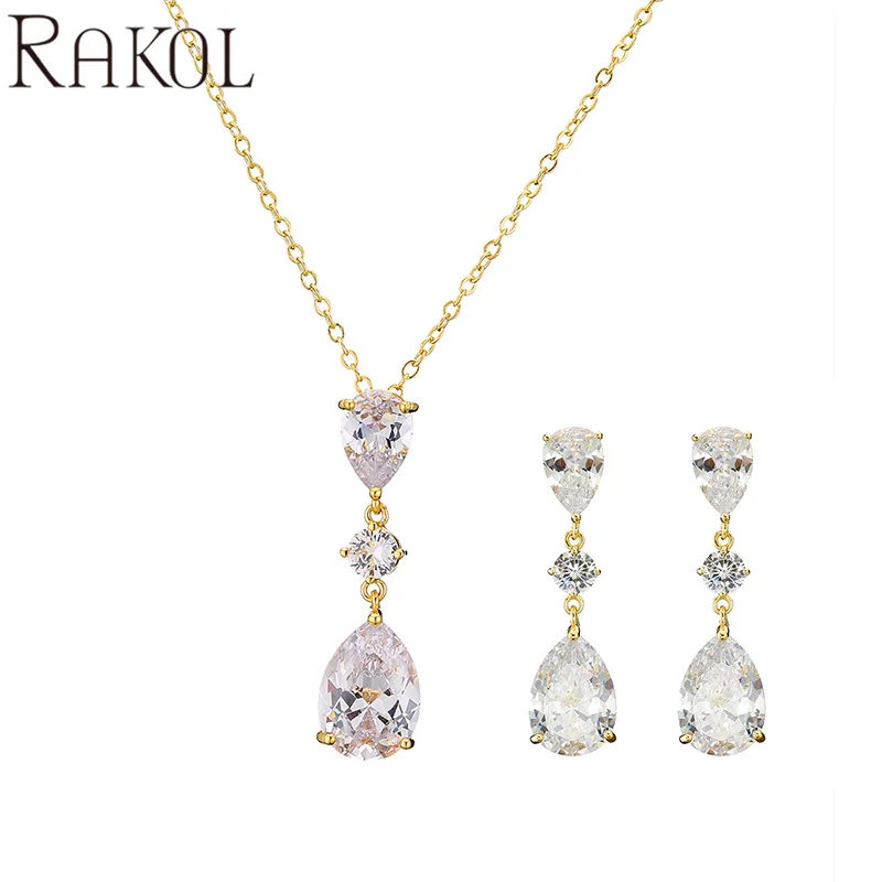 RAKOL SP3025 2022 Women fine jewelry set new arrival Newest Rhinestone Crystal Earrings Necklace Set cubic zircon drop earrings