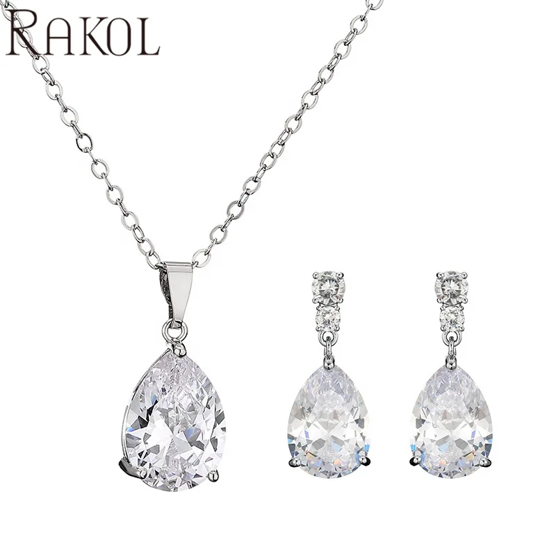 RAKOL SP3025 2022 Women Fine Jewelry Set Latest Rhinestone Crystal Earrings Necklace Set Sterling Silver Jewelry Set for Wedding