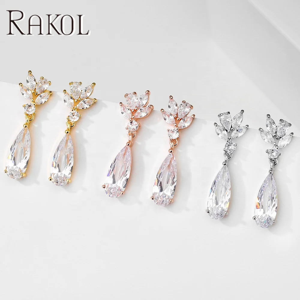 RAKOL SP3169 2022 Summer New Design Bridal Fine Jewelry Set Tear Drop Crystal Earrings 14k Gold Chain Necklace And Earring Set