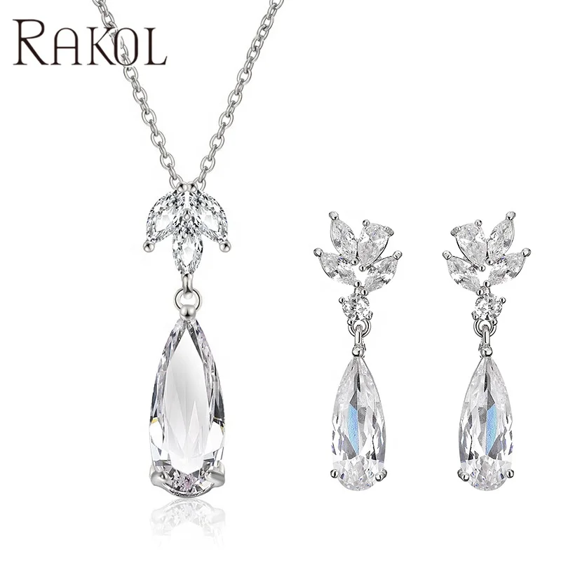 RAKOL SP3169 2022 Summer New design bridal fine jewelry set tear drop crystal earrings 14k gold chain necklace and earring set