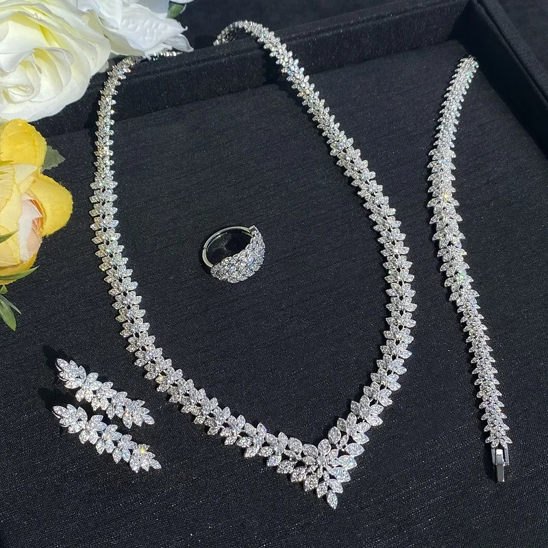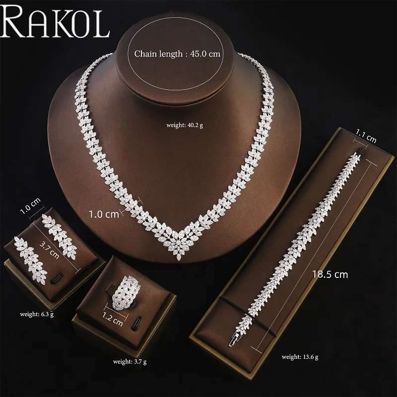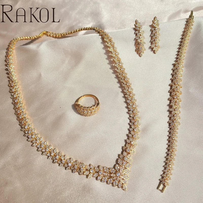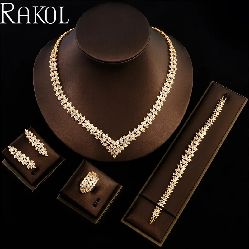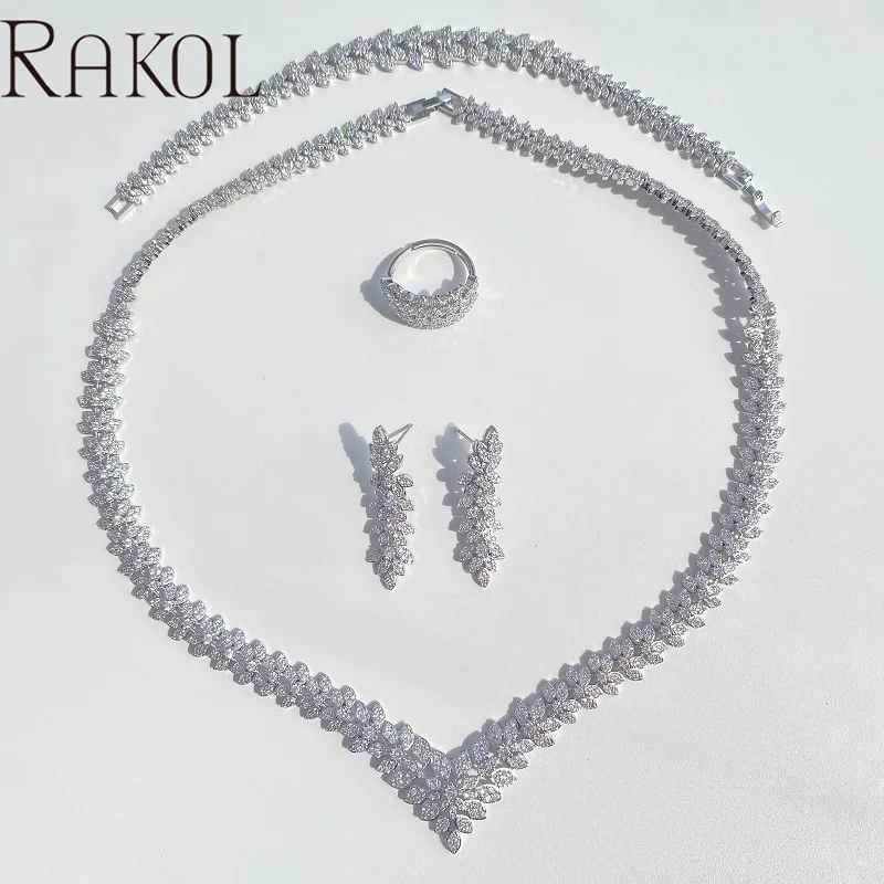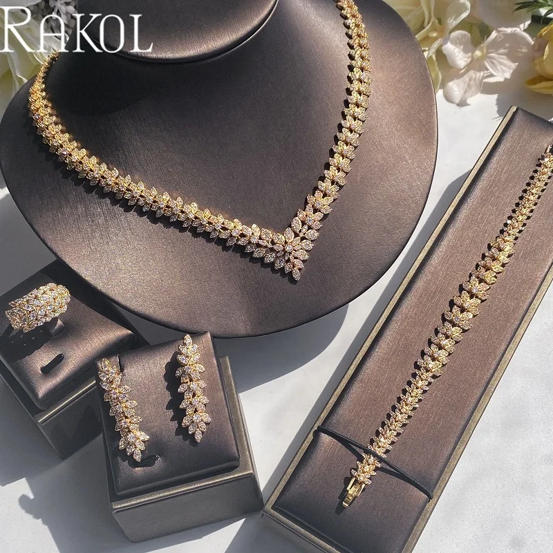 RAKOL WSP04 Luxury Crystal Cz Zircon Dubai Bridal Wedding Jewelry Sets Simple Flower Leaf Necklace Earrings Bracelet Ring Jewelry Set