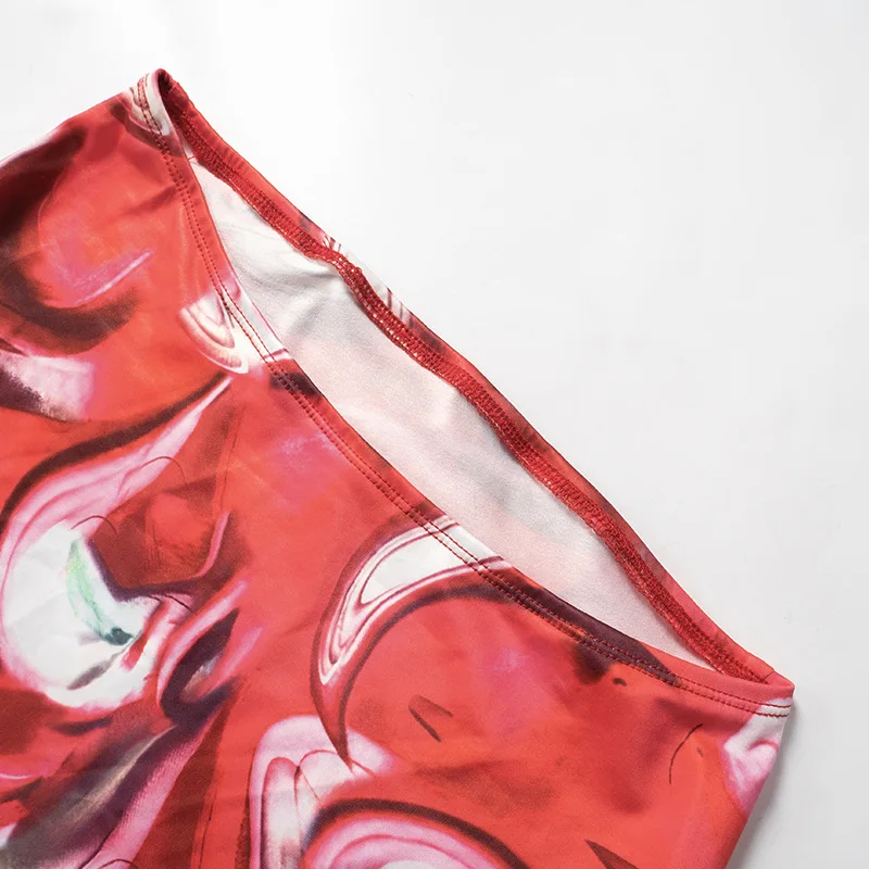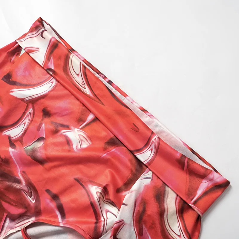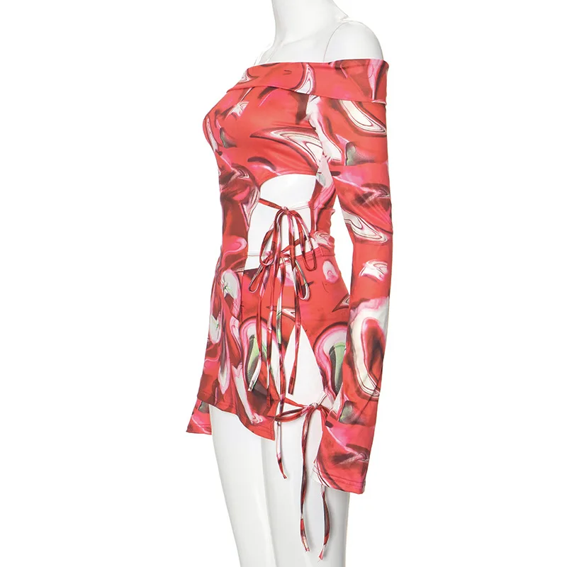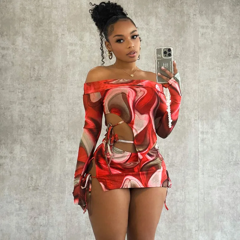 Ready to ship 2024 new arrivals fashion digital print long sleeve top 2 piece skirt set