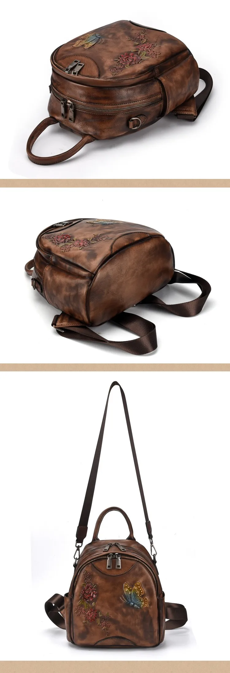 Real Cowhide Embossing Woman Backpack Vintage Shoulder Backpack Bag Genuine Leather Backpack