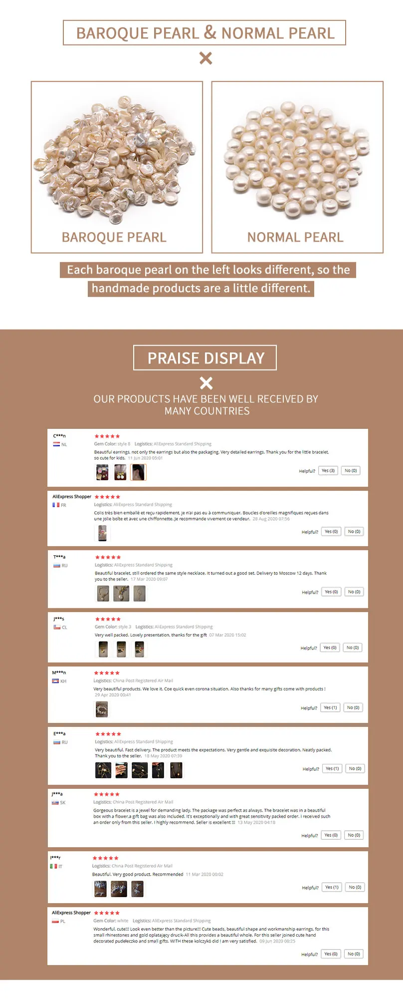 Pearl all are natural pearl, and all products are handmade, so the each size and the shape have a little difference.