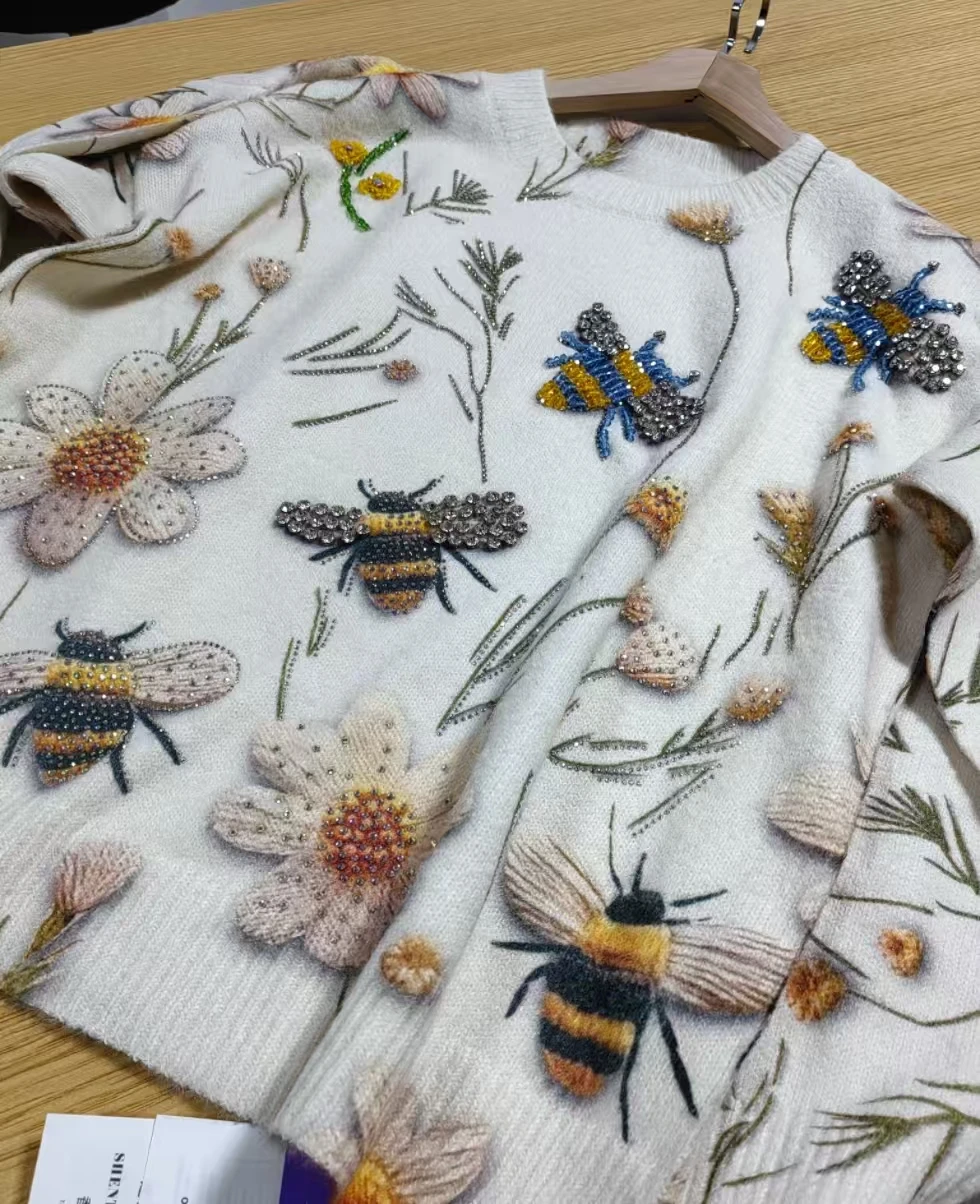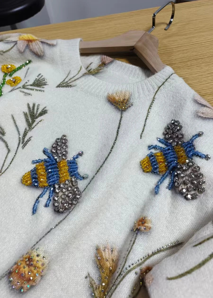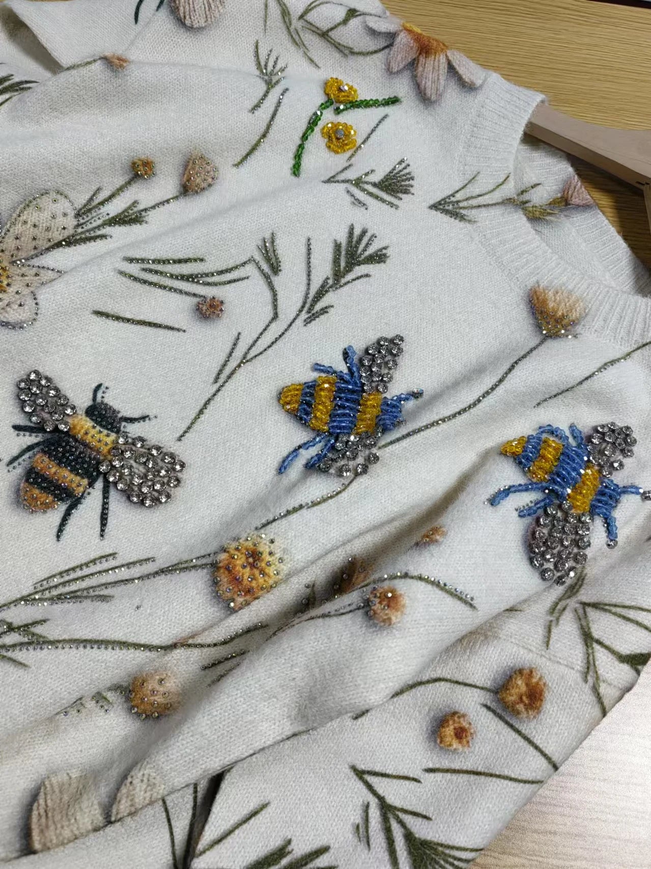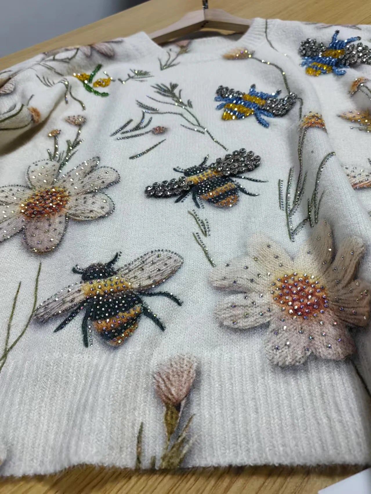 Real Photos Sparkling Crystal Stones Stitch Sweater for Women Autumn/Winter New Knit Outwears Knitwear Pullovers Femme Clothes