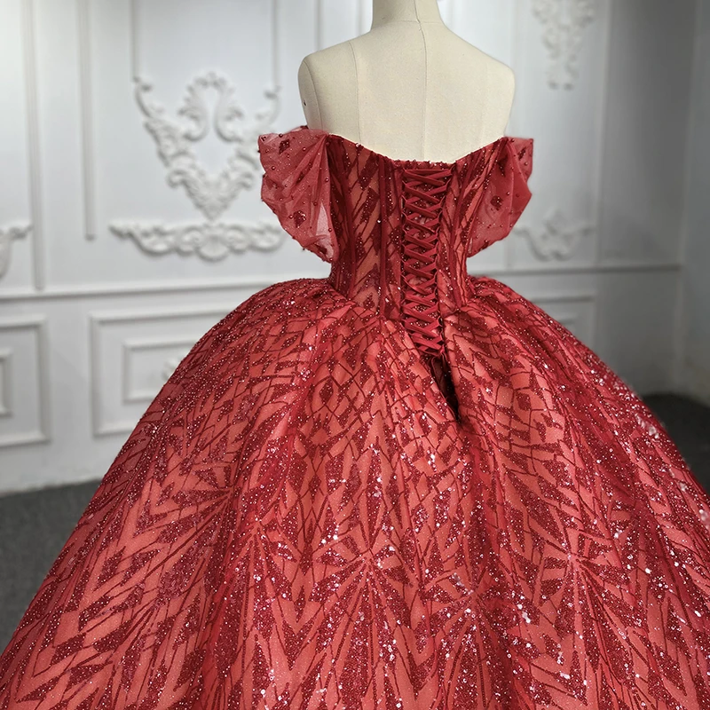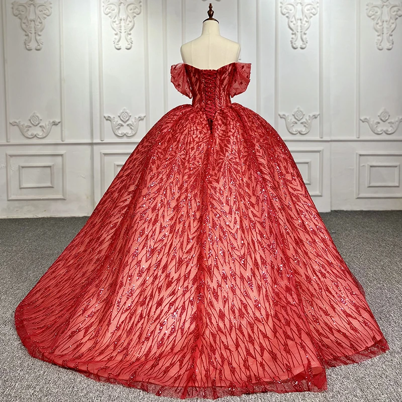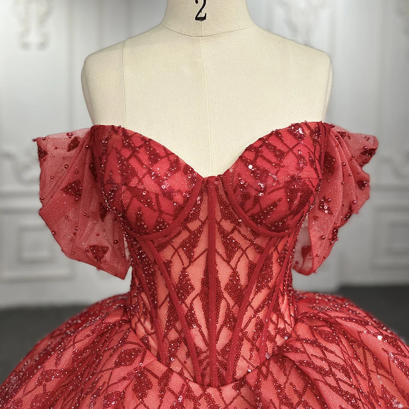 Red Sequins Bow Off Shoulder Bridal Gowns For Evening Dress Jancember 9936-1