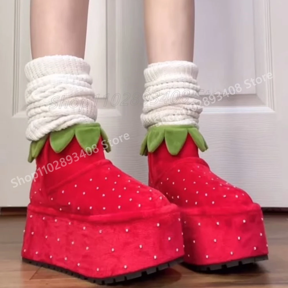 Red Strawberry Design Thick Soled Sweet Pumps Waterproof Cosplay Runway Style Fashion Big Size Women Shoes 2025 New Para Mujere