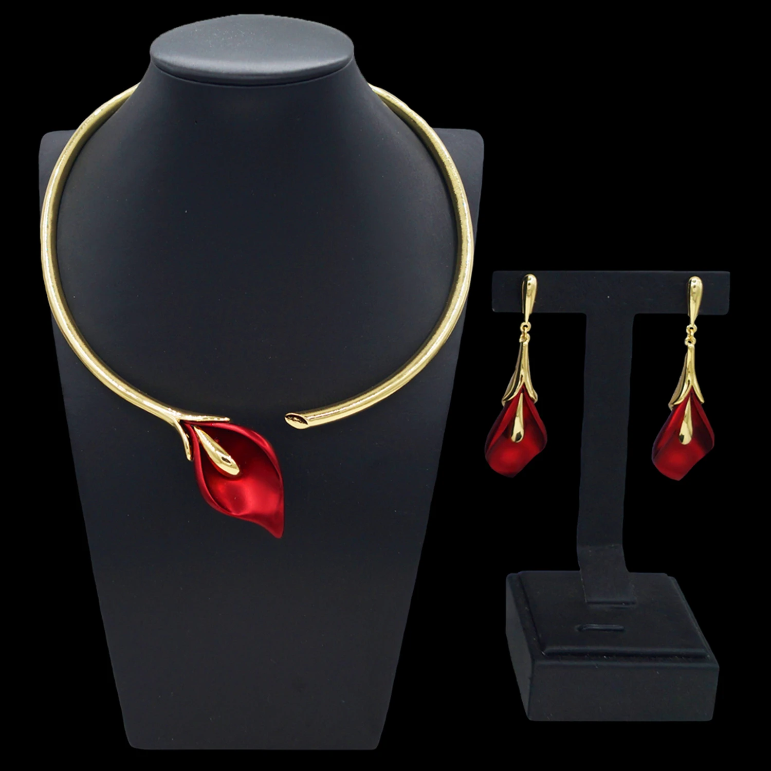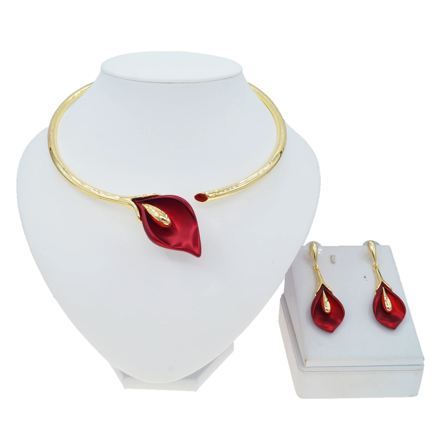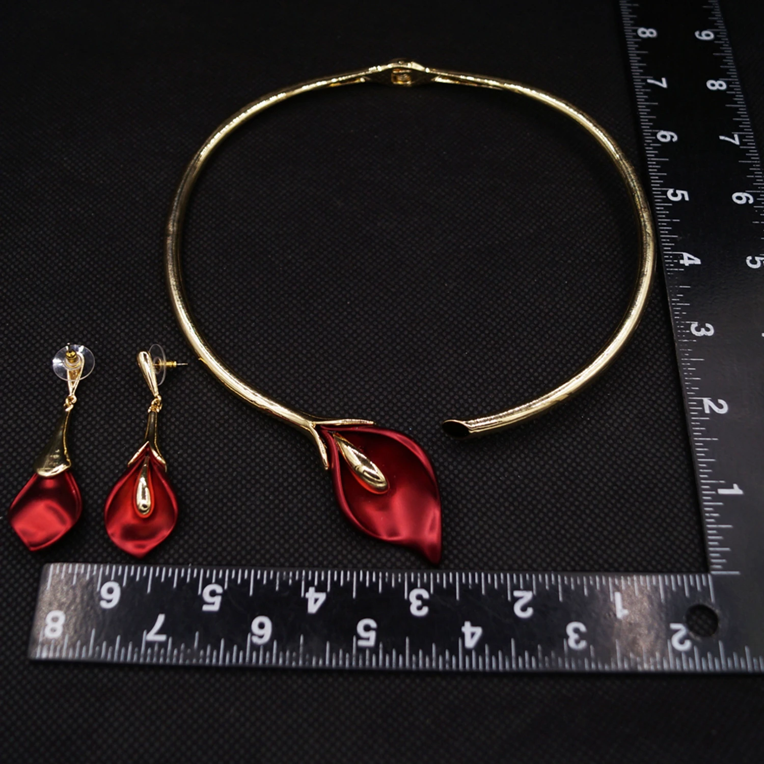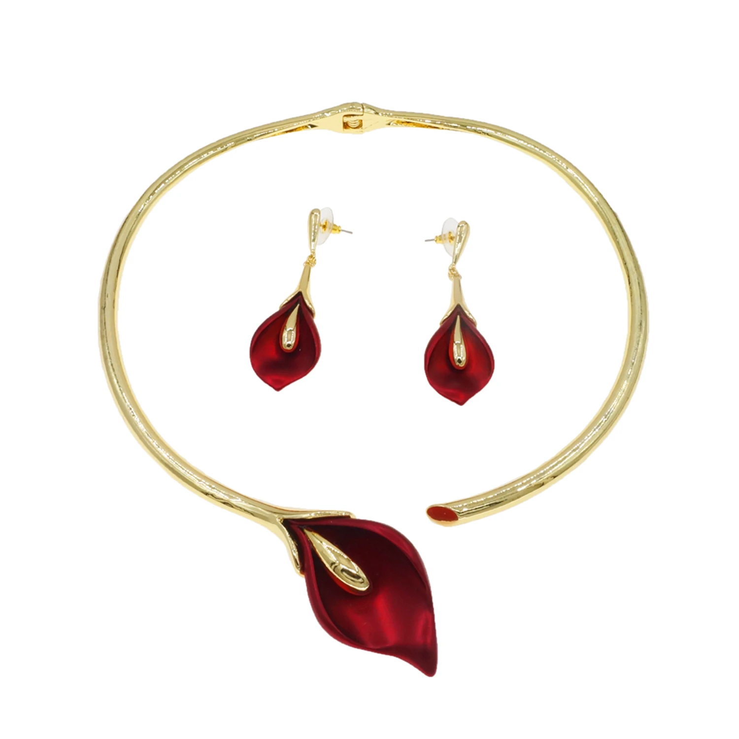 Red Tulip Flower Brazilian Jewelry Set Nice Fashion Jewelry Necklace Set Beautiful Design Jewelry For Women Earrings Necklace