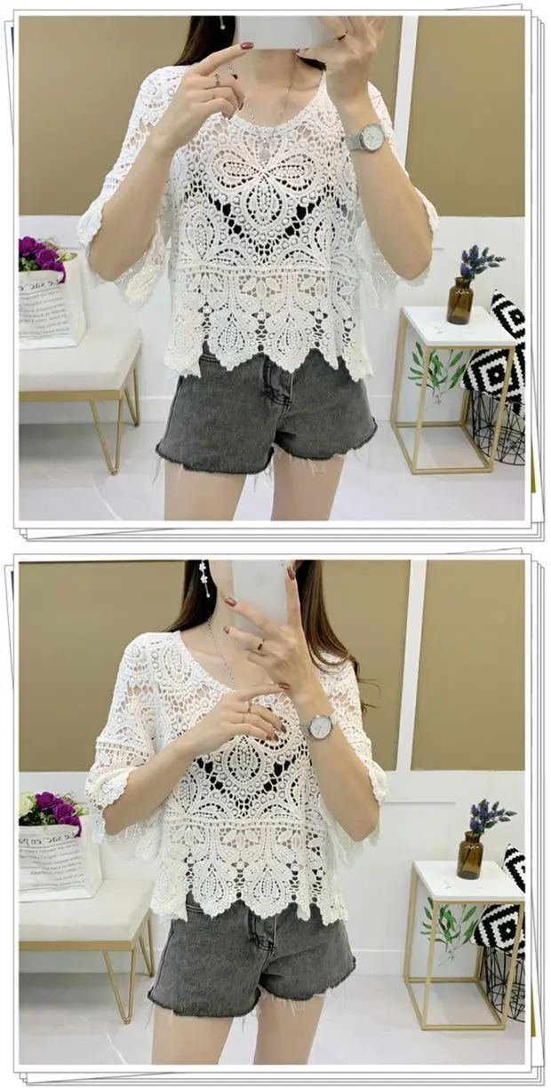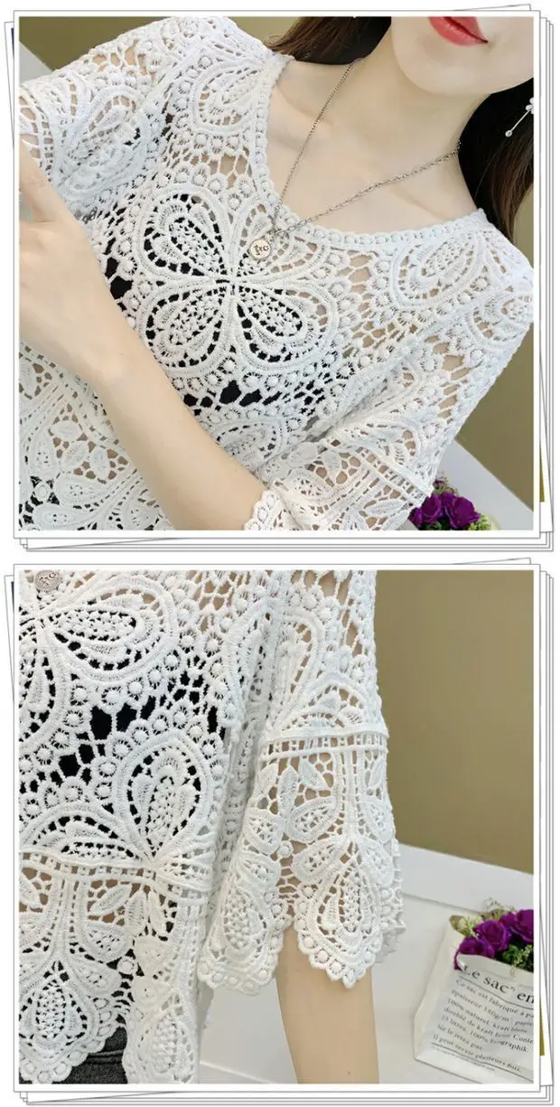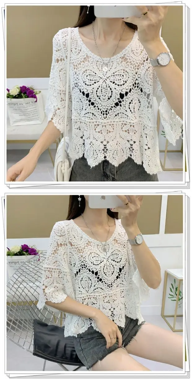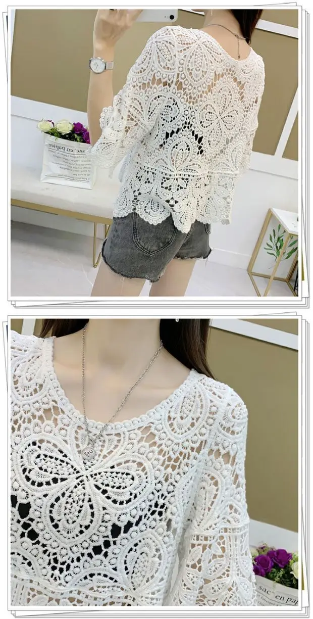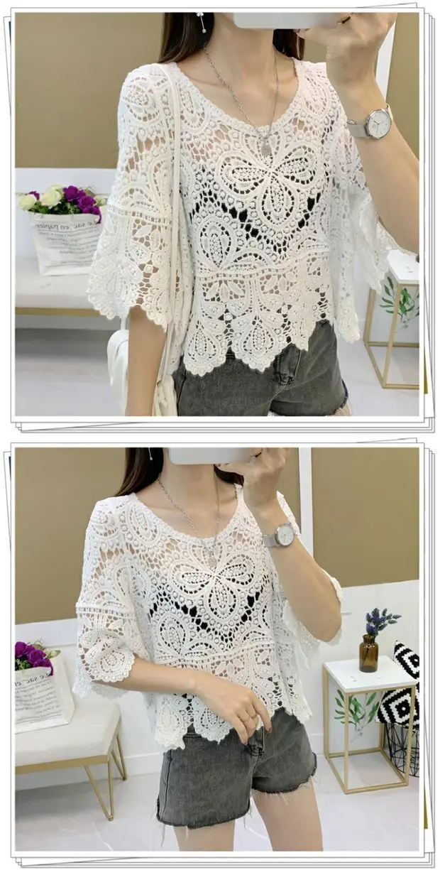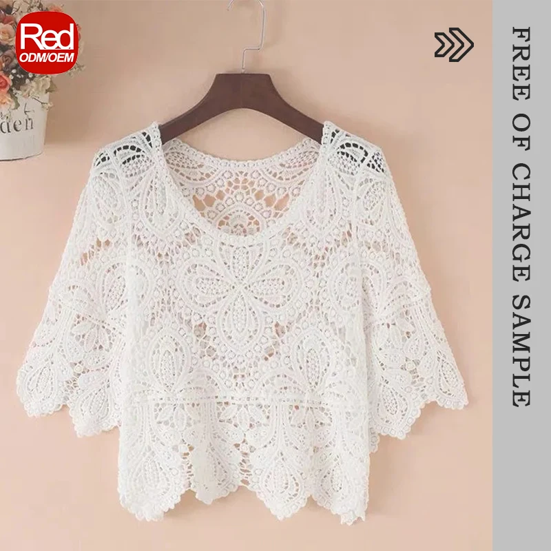 RedHK Customized Factory Directly Supply High Quality Crochet Floral Crop Tops V Neck Elegant Shirts Lady Hot Sale Beach Top