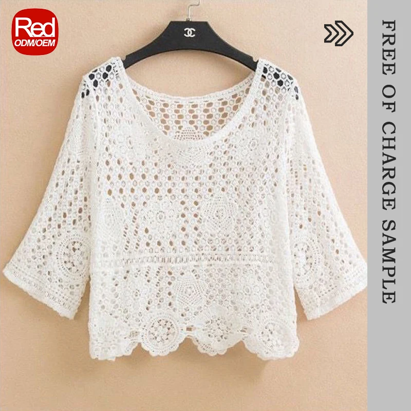 RedHK Customized Factory Directly Supply High Quality Luscious Embroidered Flowers Top Floral Embroidery Top Half Sleeves Top