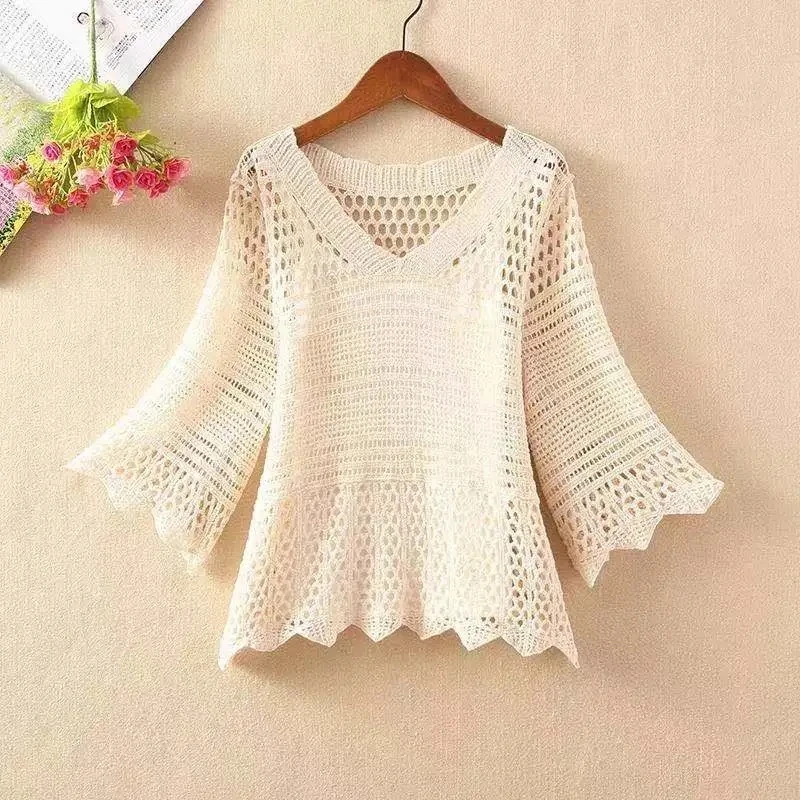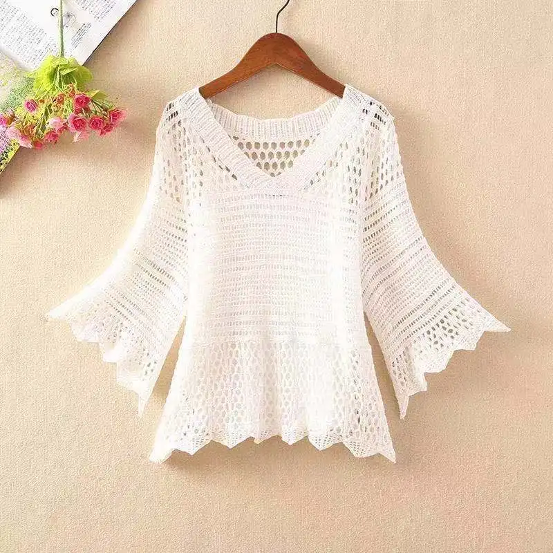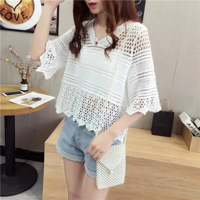 RedHK Factory Directly Supply High Quality Crochet Floral Crop Tops Korean Summer Elegant Shirts Women Casual Short Top