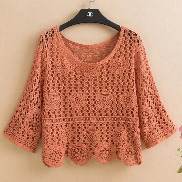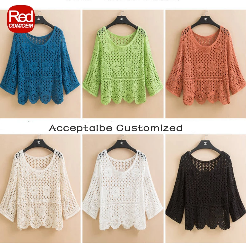 RedHK In Stock High Quality Multi Colors Select Crochet Floral Crop Tops Accept Custom Elegant Shirts Lady Crochet Lace Top