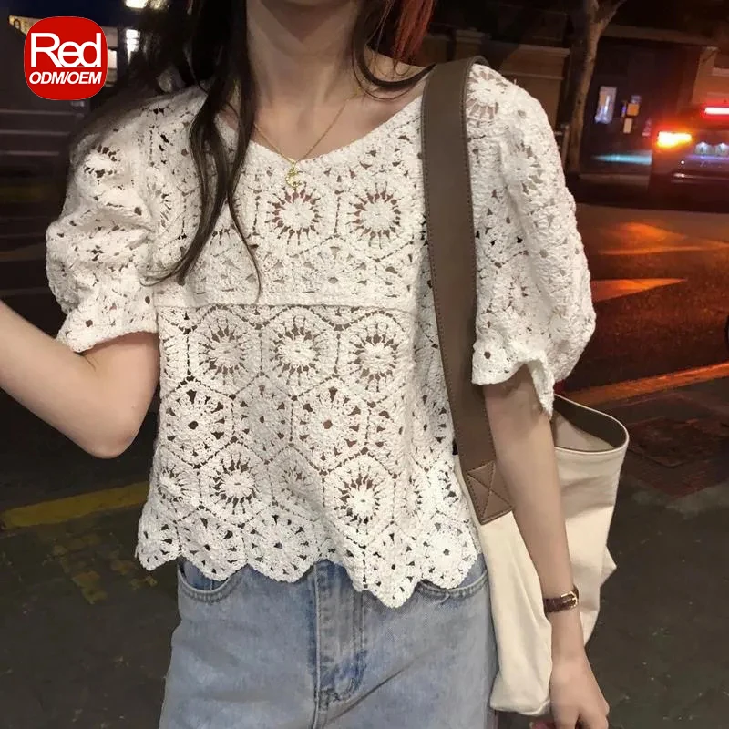 RedHK New arrivals spring casual fashion embroidery women lace blouse shirts stand collar long sleeve button up ladies' blouses