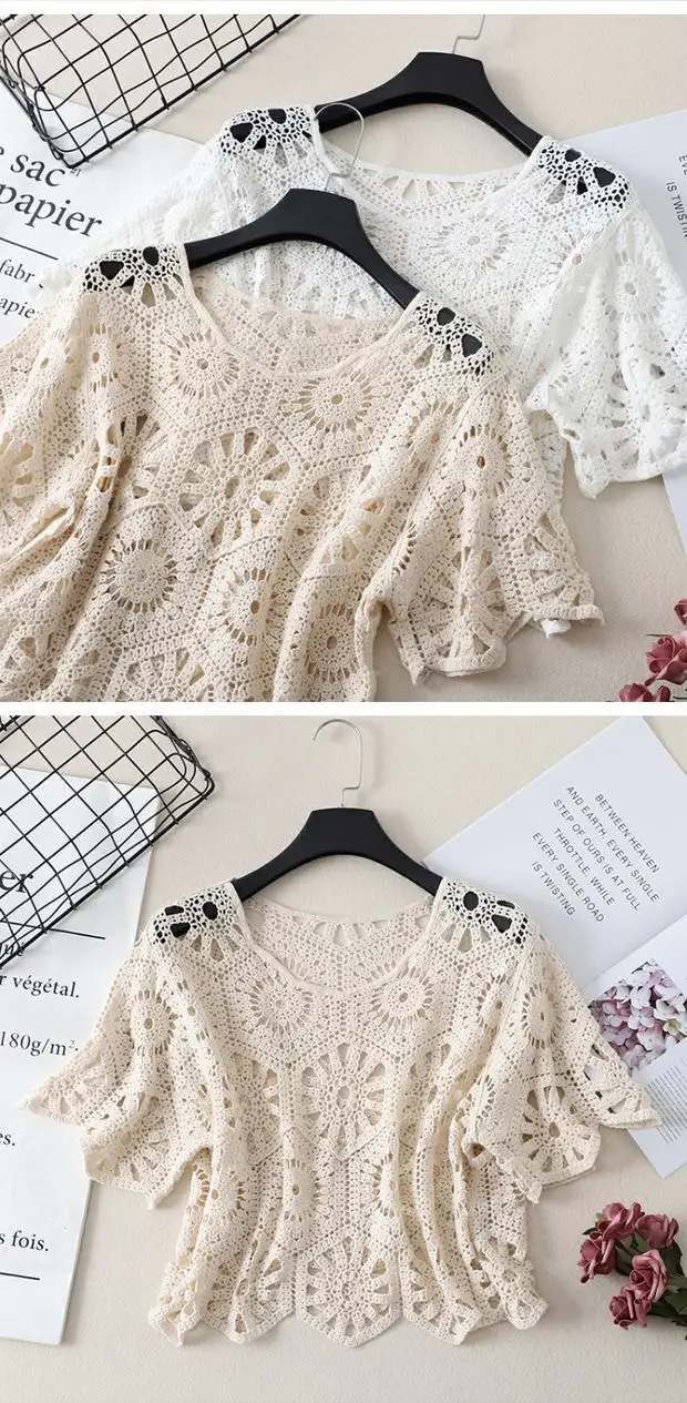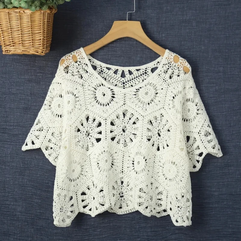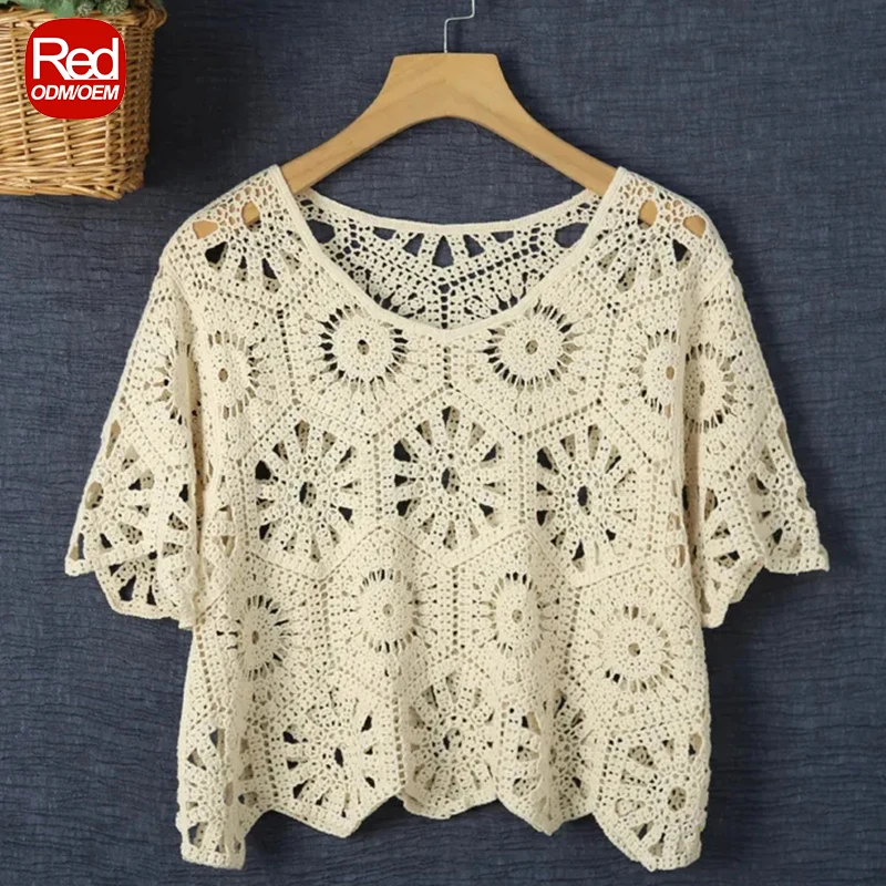 RedHK RTS Product Factory Directly High Quality free people crochet top faded glory crochet top short sleeve blouse